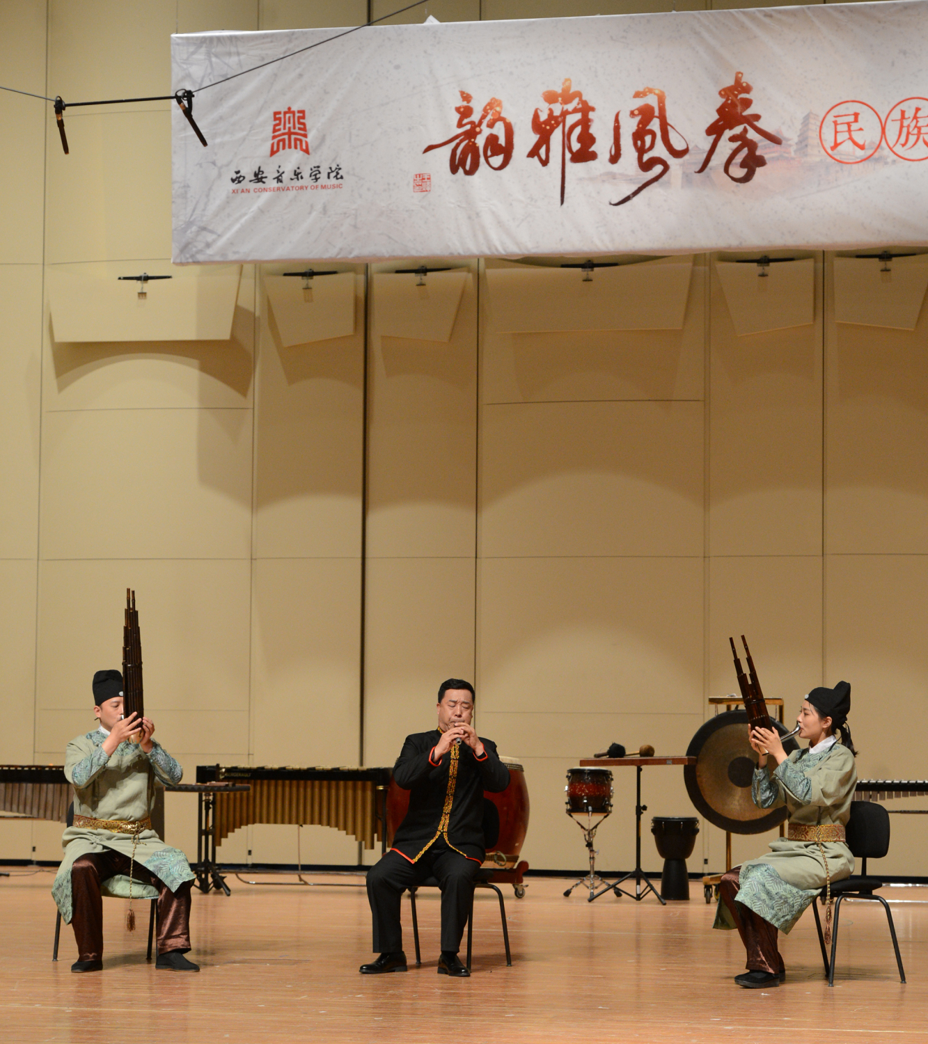 “秦风雅韵”民族音乐会是西安音乐学院民乐系精心打造的一台特色鲜明的秦派音乐,亦是以“新”为主题的继承、创新和开拓“秦风秦韵”的民族室内乐音乐会。其中“秦派二胡”、”秦派古筝”、“西安鼓乐”、“平湖派”琵琶、“长安笛韵”和排箫等演奏,丰富多样,展示了西安音乐学院民乐系教学团队的综合风貌。