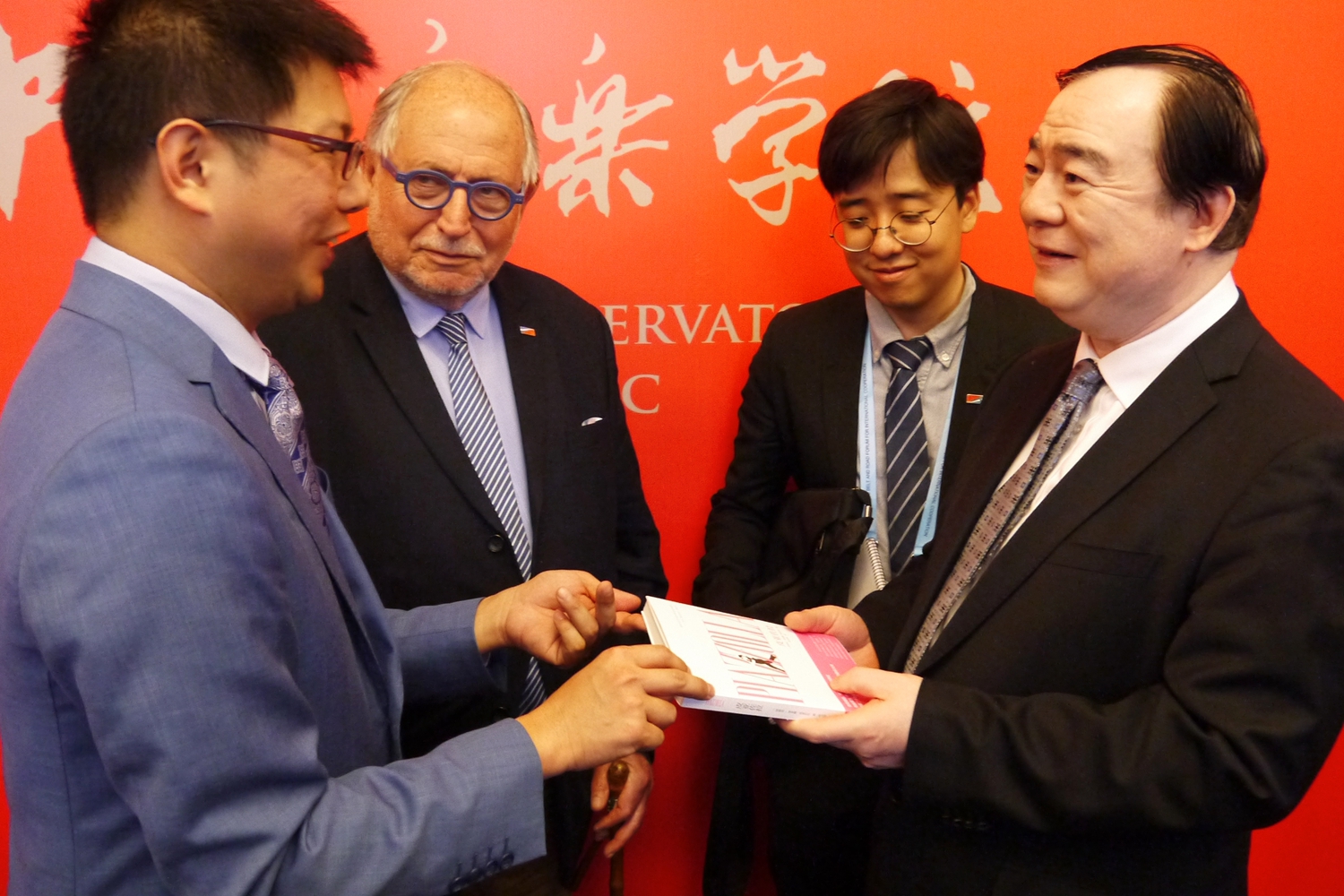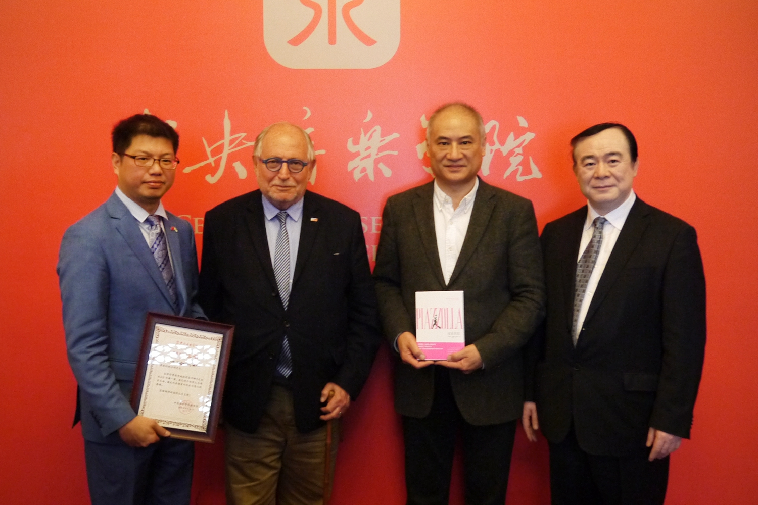会谈之后,阿根廷大使馆文化顾问、探戈学者欧占明先生将刚刚出版的译著《皮亚佐拉》赠送给俞峰院长和kaiyun体育网页登录入口图书馆。这是中国第一本《皮亚佐拉》中文书籍,原著是由阿根廷著名作曲家阿斯托尔·皮亚佐拉的女儿蒂亚娜·皮亚佐拉耗费十年完成的作品,中文版由人民日报出版社出版。图书馆馆长何荣教授向欧占明颁发了捐赠证书。