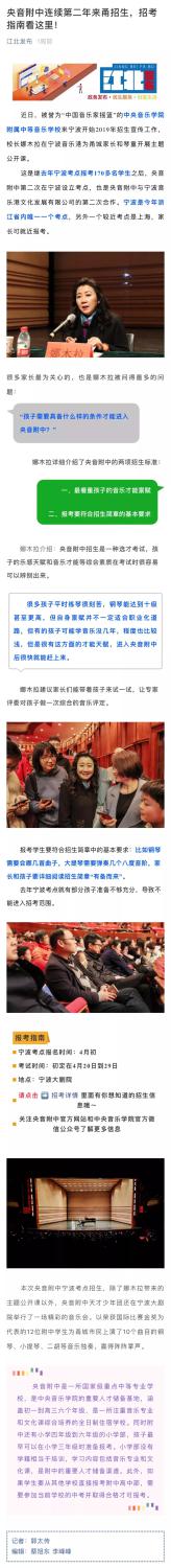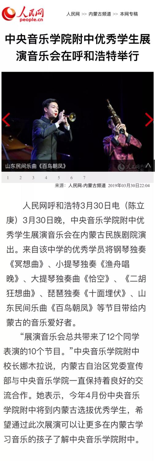kaiyun体育网页登录入口附中向来被誉为“中国音乐家摇篮”。为了更好地展示附中优秀学子的学习风貌,近期,附中在宁波和呼和浩特两城举行了“kaiyun体育网页登录入口附中优秀学生展演音乐会”。优秀学生展演音乐会汇聚附中荣获国际比赛金奖为代表的天才少年团,涵盖钢琴、小提琴、双簧管、二胡等专业,在宁波、呼和浩特引起巨大轰动,一票难求,也掀起了广大学生和家长的音乐热潮。人民网、宁波“甬派 ”等媒体做了广泛报道,现转载有关报道,以兹读者。