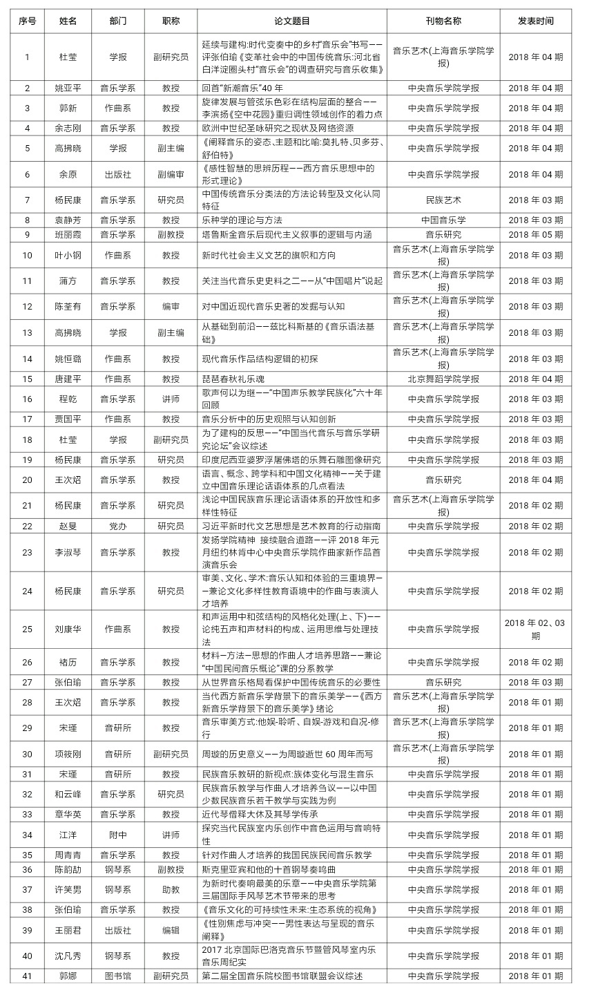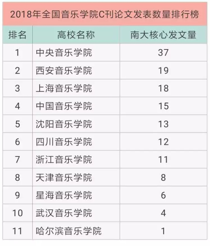 3月19日,知名学术公众号“学术志”依据中国科学文献计量评价研究中心发布的《中国高校科研成果统计分析数据库》,发布了全国高校C刊论文发表数量排行榜,kaiyun官网2018年度C刊论文发表量37篇,遥遥领先于全国十一所独立建制的音乐学院。