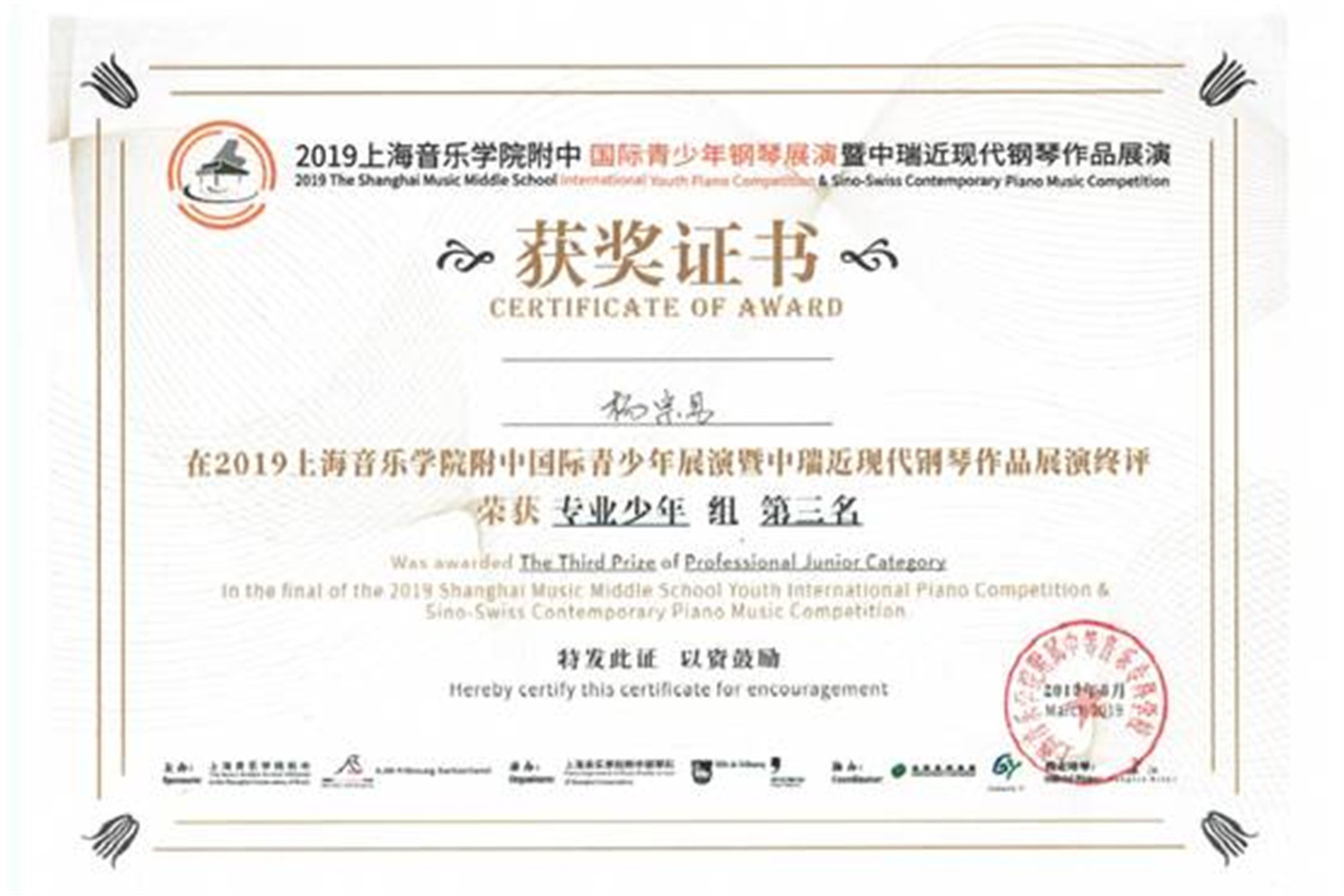 2019年3月8日-10日,“2019第三届上音附中国际青少年钢琴展演(比赛)”决赛阶段比赛在中国上海展开激烈争夺。kaiyun官网多名学生在比赛中取得佳绩。