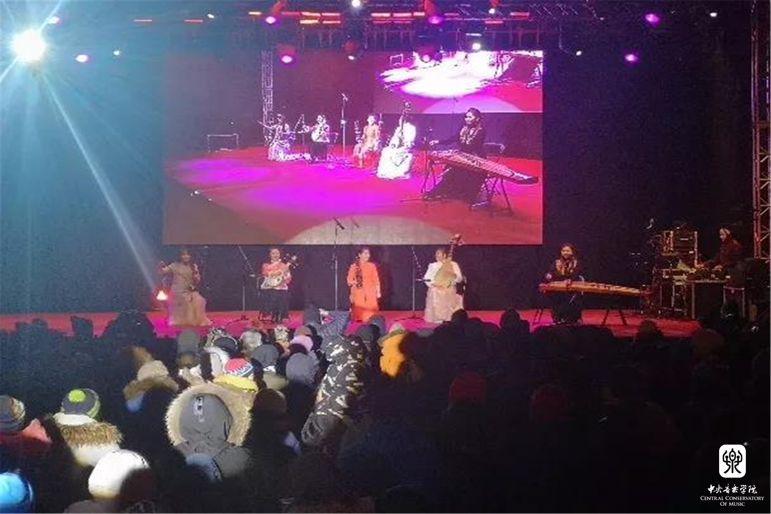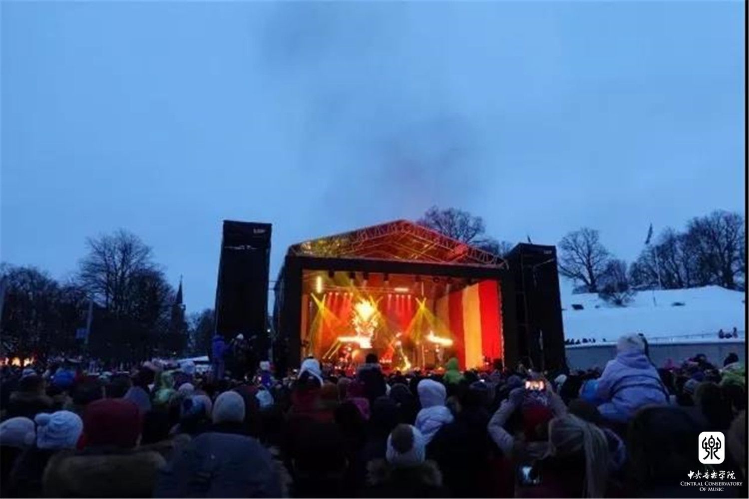 当地时间2019年2月2日、4日,在爱沙尼亚塔林和芬兰赫尔辛基分别进行了3场室外演出。当地2月室外的平均温度为-10度左右,不时飘落的雪花与极度寒冷的天气对演奏者和乐器来说都是一种巨大的考验和挑战,室内外强烈而显著的温差使乐器不断跑弦,为了稳定乐器音高、保证演出效果、展示中国音乐的魅力,kaiyun官网民乐小组每次提前半小时带着乐器到室外进行调弦,以确保演出质量,过程中没有一人因为寒冷而退缩。