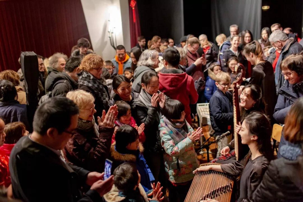 法国春节巡演活动是音孔院一年一度的保留项目,旨在与法国民众分享中国音乐文化。本年度巡演周期由以往的七天延长为十二天,由大城市扩展到中小型城市,由专业音乐厅深入基层群众活动中心及法国校园,受众群更为广泛,观众群体更为多样。此外,音乐会后观众与音乐家的交流互动使观众对中国音乐的认识不仅仅是浅尝辄止,而是能够在欣赏音乐之后了解乐器背后的文化内涵,有些观众甚至可以在音乐家的指导下触摸乐器、尝试演奏,进一步提高对中国音乐的认知和喜爱。观众们围绕着音乐家,久久不愿离去,许多人表示“这是一场精神的盛宴,太美妙了”,“中国音乐像是在跟我们讲故事”,“通过欣赏中国音乐,了解其背后的文化,让我更加向往古老的中国”。