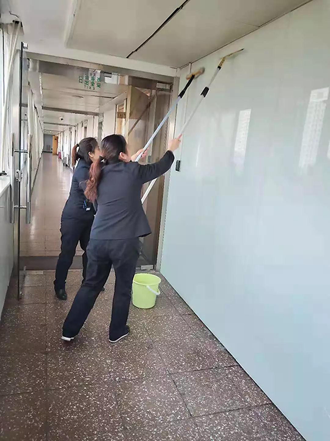 要求物业人员开学前全面做好校园内卫生保洁工作,为给返校师生一个干净整洁、便利、安全的学习、生活环境,在校园、楼宇处处都可看到物业员工忙碌的身影。搞好校园环境卫生整治,重视每一个细节,不遗漏每一个死角,对楼层走廊、楼梯及扶手、角落的卫生进行仔细检查和大清洁,厕所进行消毒除臭,清理绿化带、校园内垃圾、枯枝。维修人员检修校园设备设施。对教学楼、学生公寓、办公楼各项报修响应及时、维修到位。保障新学期正常教学秩序及校园卫生。