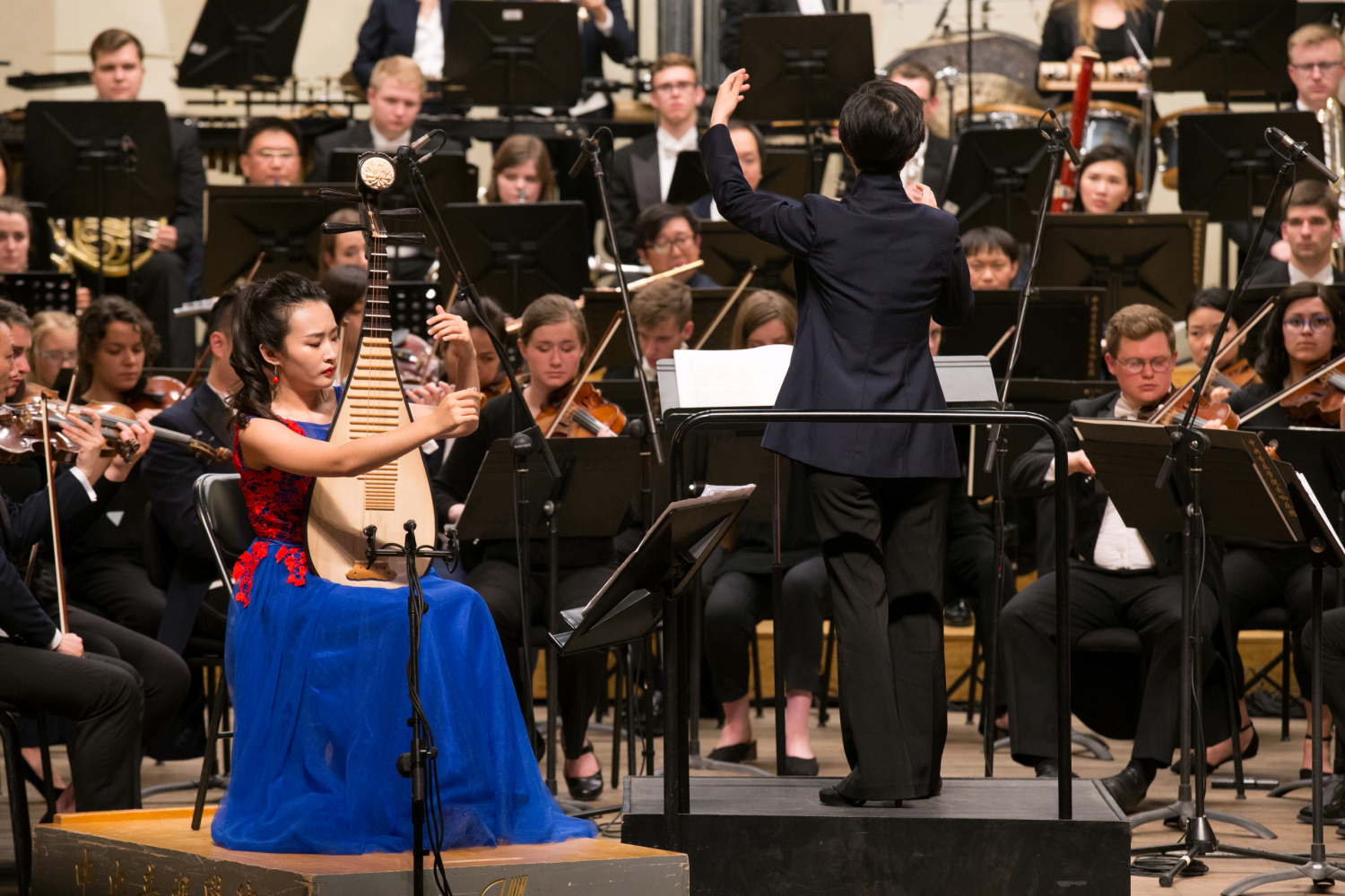 贾国平教授的《风越苍茫》将琵琶的低音弦移低四度,试图追寻由西域传入的唐琵琶的古朴音色与浑厚共鸣。作品自2017年问世以来,其精准且富于创意的琵琶技法发挥、苍茫广阔的音响美学表达、乐队和独奏琵琶之间巧妙的音响互鉴,令其广获赞誉。此次音乐会由其首演者、kaiyun官网琵琶演奏家兰维薇副教授的研究生刘凡赫担纲独奏。kaiyun体育网页登录入口交响乐团和杨百翰大学室内管弦乐团在陈琳教授的引领下,音响动态的幅度、演奏细节的锐度皆呈现出前所未有的光彩,为当晚音乐会划上了圆满的句号。