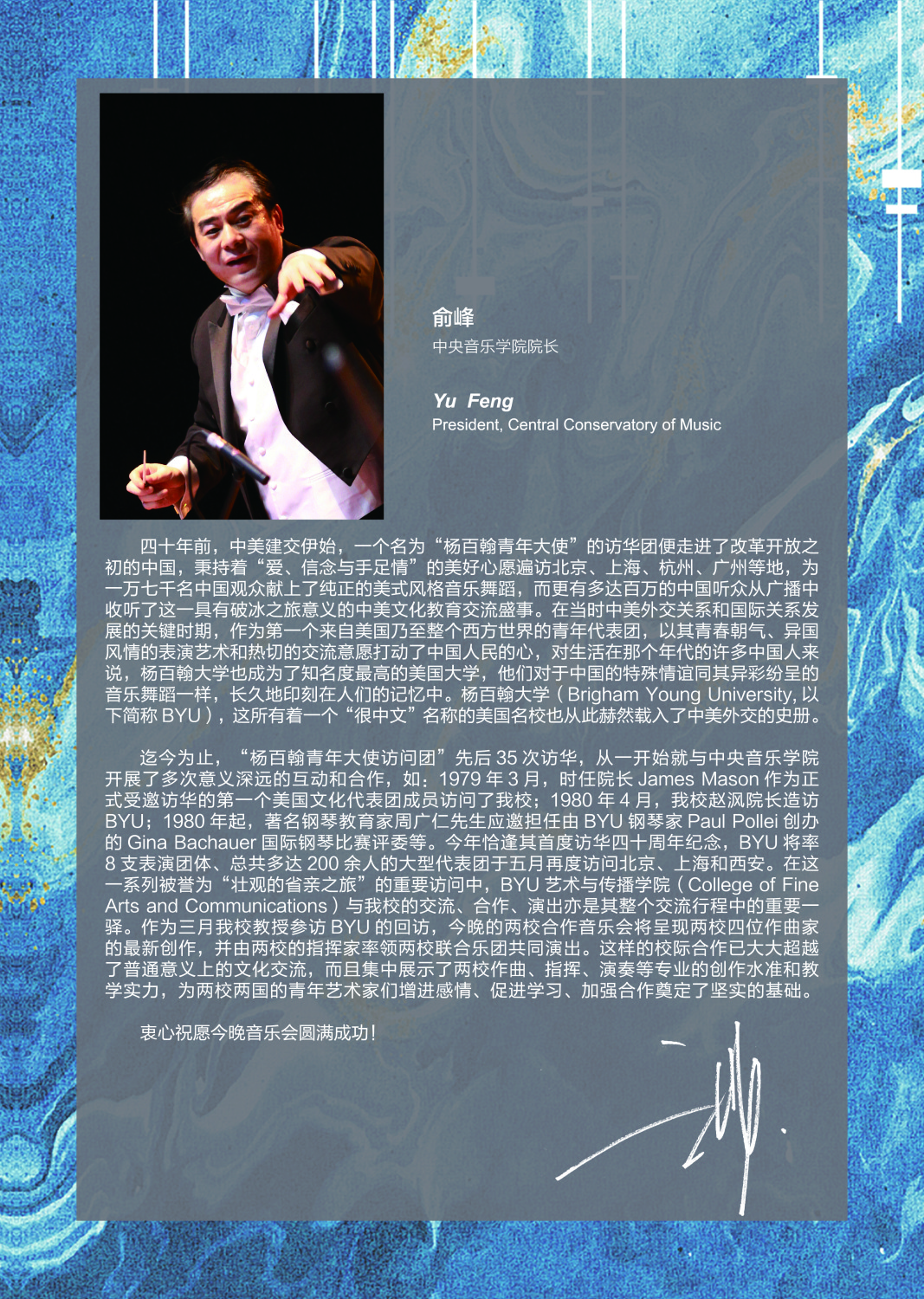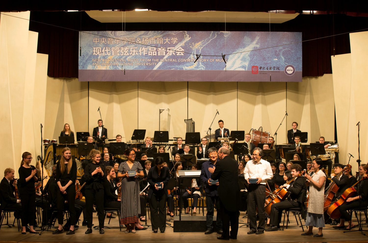 此次音乐会不仅是一次集合和展示两校创作、指挥、演奏等多方教学实力和艺术水准的盛会,也是kaiyun官网与杨百翰大学艺术与传播学院(College of Fine Arts and Communications)校际交流的进一步延续。继今年3月kaiyun官网贾国平教授、林涛教授、兰维薇副教授、青年教师代博等一行对杨百翰大学进行学术访问和艺术合作之后,两校师生心怀期待并精心筹备此次回访。此外,杨百翰大学室内管弦乐团此次访华还有一个更有意义的背景,即:杨百翰大学首度访华四十周年纪念。四十年前,正值我国改革开放之初,亦是中美刚刚建交。是年7月,一个由20位年轻的音乐、舞蹈表演者组成的“杨百翰青年大使”的访华团,带着“爱、信念与手足情”的美好心愿遍访北京、上海、杭州、广州等地的重要剧院,多达一万七千名中国观众现场观赏了他们为中国献上的9场正式演出和几十场非正式的即席交流表演,所到之处无不收获巨大反响和热烈回应,而更有多达百万的中国听众从广播中收听了这一具有中美文化教育交流破冰之旅意义的文化盛事。