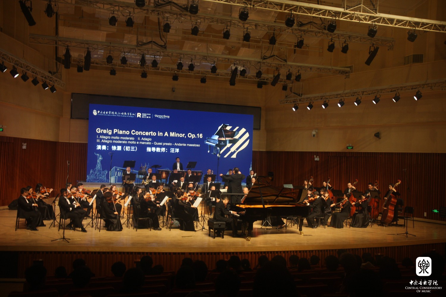 三位在琴校协奏曲比赛中胜出的同学:李馨冉(小六)、徐灏(初三)、钟李成(高二),与厦门市歌舞剧院交响乐团合作,在韦丹文教授的执棒下展现了娴熟的专业技巧和精湛的演奏水准,为观众们带来了一场沁人心腑、震撼人心的听觉盛宴。