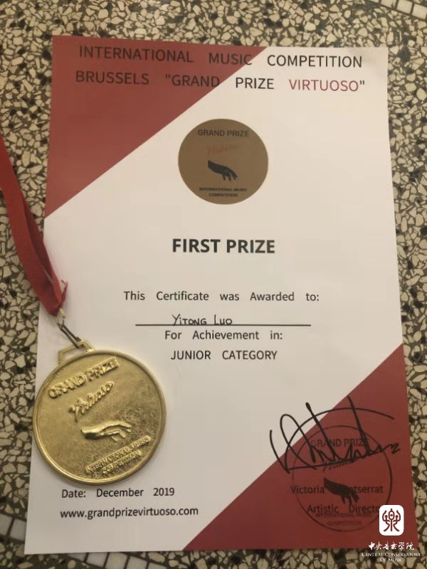 2019 International Music Competition Brussels "Grand Prize Virtuoso"是在弦乐、钢琴、管乐、声乐和室内乐方面面向所有民族和年龄的人开放,评委有来自意大利的著名小提琴家Gian Paolo Peloso及钢琴家Christine Taylor,艺术总监Victoria Monserrat等。比赛旨在发现具有杰出个性的艺术家,鼓励年轻的音乐家表演和成长,帮助他们建立自信,实现梦想。