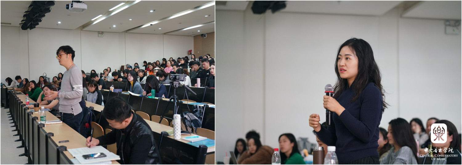 报告结束后,现场听众踊跃提问,对于大家学习中产生的疑问,王教授给予了耐心、细致地解答,特别是针对学生提出的在欣赏我国音乐作品时,如何理解中、西方音乐观念碰撞的问题,他谈到:“中国古代文化与西方文化思维不同,中国文化更重感性体验,更多地是描述与感悟,而不是逻辑思辨。中国作品更多地是多段体散体结构,如用西方的作曲原则,是无法生搬硬套的,我们在学习中要思考如何将二者结合 ”。