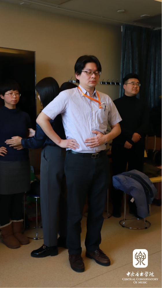 学员们正在体会姿势与正确吸气的关系