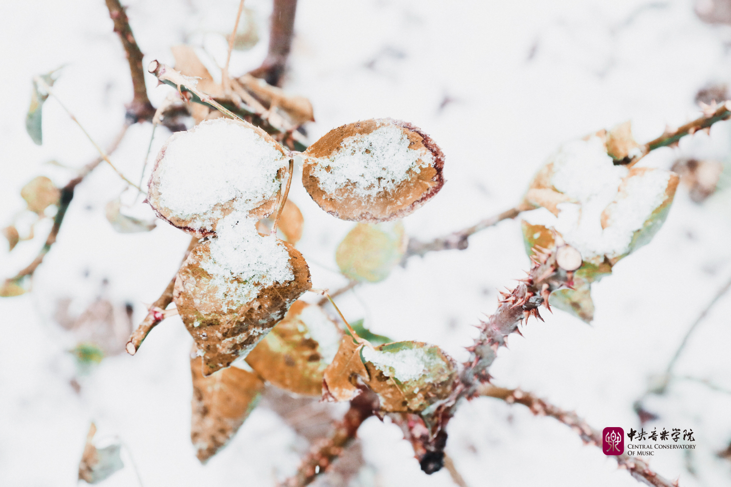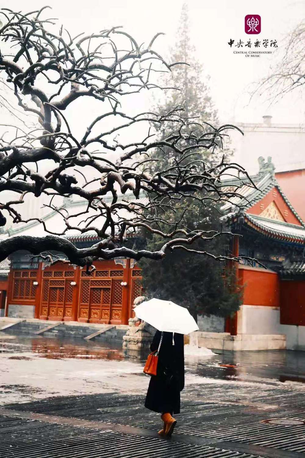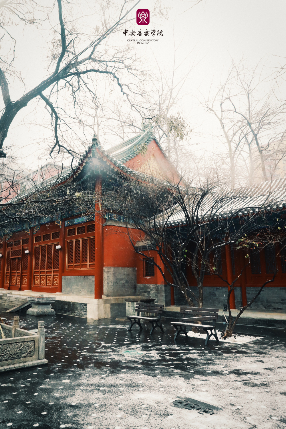 冬日的央音在纷纷扬扬的雪花中美得静谧而深沉