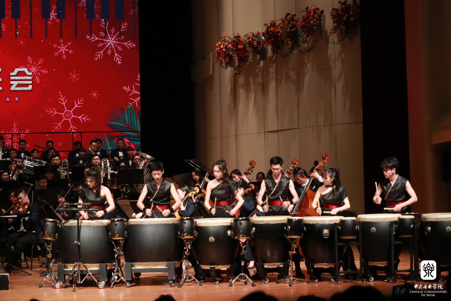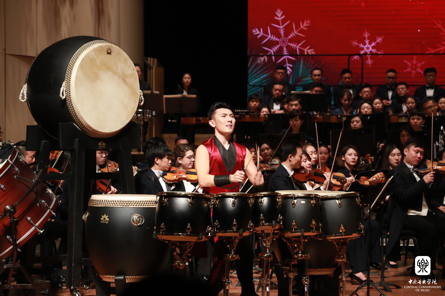 kaiyun官网青年教师、打击乐演奏家尹飞携手其学生、kaiyun体育网页登录入口附中三年级王庶羽同学与进击打击乐团奏响张仰胜先生作曲的《八佾》,敲响了新年的第一声锣鼓。尹飞、王庶羽师生在2019中央广播电视总台中国器乐电视大赛中分别获得了打击乐职业成年组冠军和职业少年组冠军,他们与其他鼓手们在音色与演奏上的默契配合与精彩演绎,营造出排山倒海的气势,让现场所有听众领略到了古代君王大气磅礴的出行场景。
