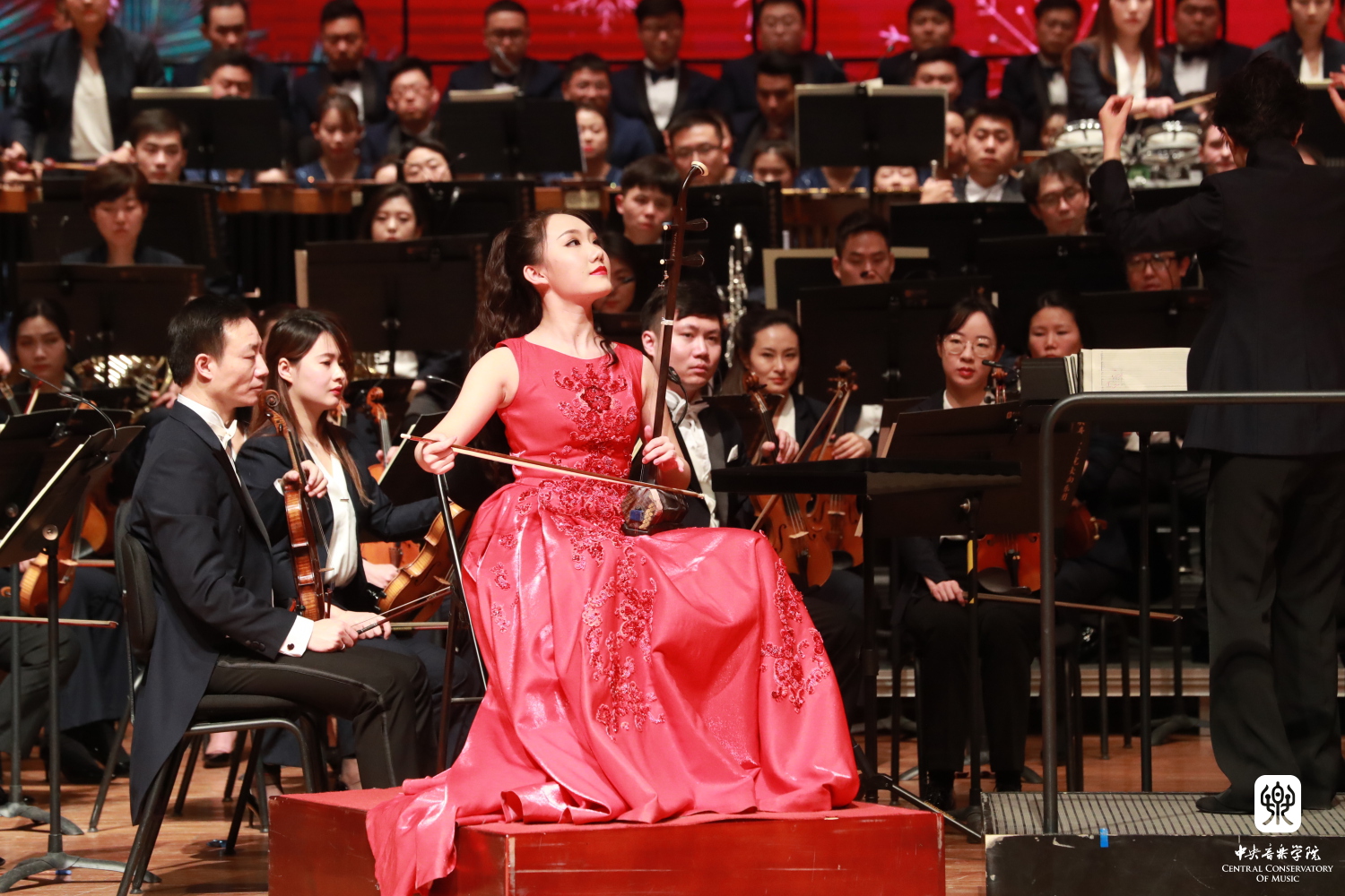刚刚获得2019中国音乐金钟奖二胡组金奖的硕士一年级学生高白(指导教师:于红梅)为现场带来了王建民先生作曲的《第五二胡狂想曲》。她的演奏细腻优雅、挥洒自如,将音乐中舒展辽阔的蒙古民歌元素呈现得淋漓尽致,用二胡唱响了一曲具有中国气派的“赞歌”。