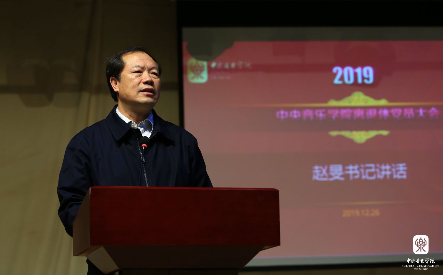 大会首先由赵旻书记讲话。赵书记向老党员介绍了学校近年的教学、科研、人才培养、改善办学条件等方面情况,他谈到,学校取得今天的发展成果,是过去70年来一代代央音人用自己的努力和奋斗打下的坚实基础,老同志们始终是学校的宝贵财富,是学校发展的支撑点。