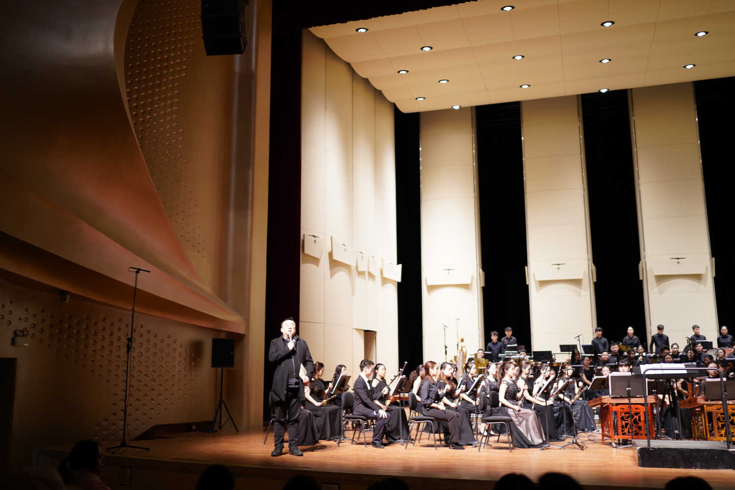 2019年12月3日晚,由kaiyun体育网页登录入口作曲系、民乐系、指挥系联合主办、研究生部协办的《民族管弦乐写作课——优秀作品暨乐队课教学汇报专场音乐会》在kaiyun体育网页登录入口歌剧音乐厅成功上演。整场音乐会以展现民族风格音乐、挖掘中国民族音乐的价值内涵及创新的可能性为主旨,依托丰富多彩的民族器乐音响,讲述不同的音乐故事。音乐会开始由作曲系系主任郝维亚教授致辞。