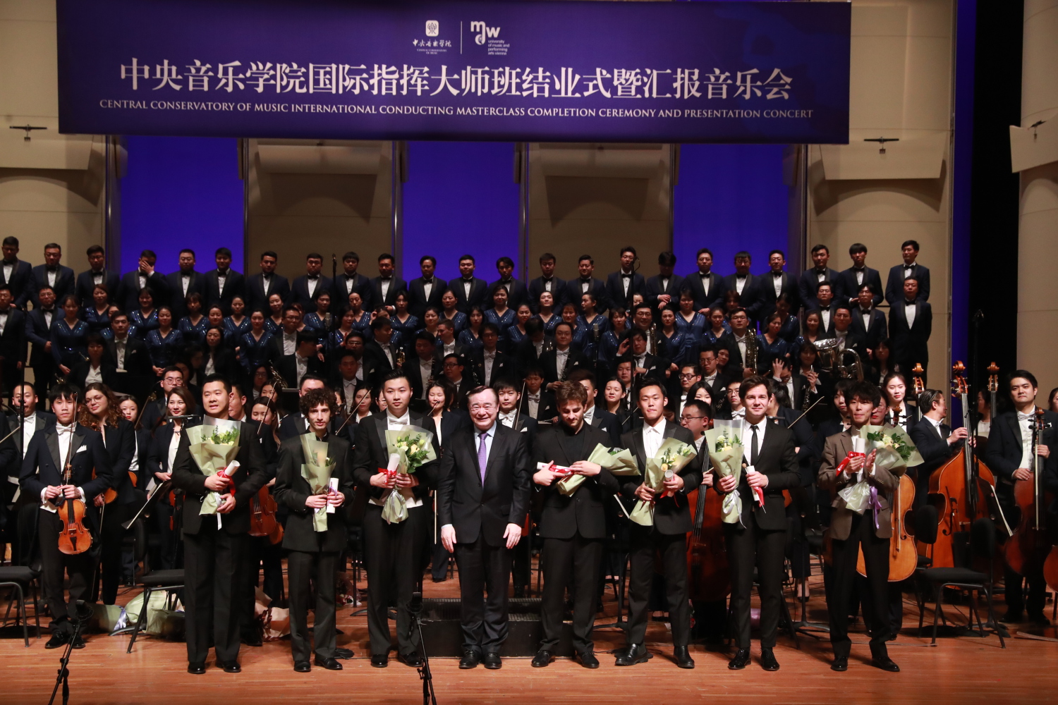 由kaiyun体育网页登录入口主办,kaiyun体育网页登录入口国际交流处、指挥系以及表演艺术中心承办的国际指挥大师班于11月24日至28日在京举行。此次大师班迎来了维也纳音乐与表演艺术大学指挥专业的三位学生,他们与kaiyun体育网页登录入口指挥专业的优秀学生共同跟随我国著名指挥家、指挥教育家俞峰院长进行学习。为期四天的指挥大师班,特邀kaiyun体育网页登录入口交响乐团、kaiyun体育网页登录入口合唱团以及声乐歌剧系著名女高音歌唱家王威、宋元明,男高音歌唱家许昌共同合作。28日晚,历时四日的国际指挥大师班迎来了结业式暨汇报音乐会。