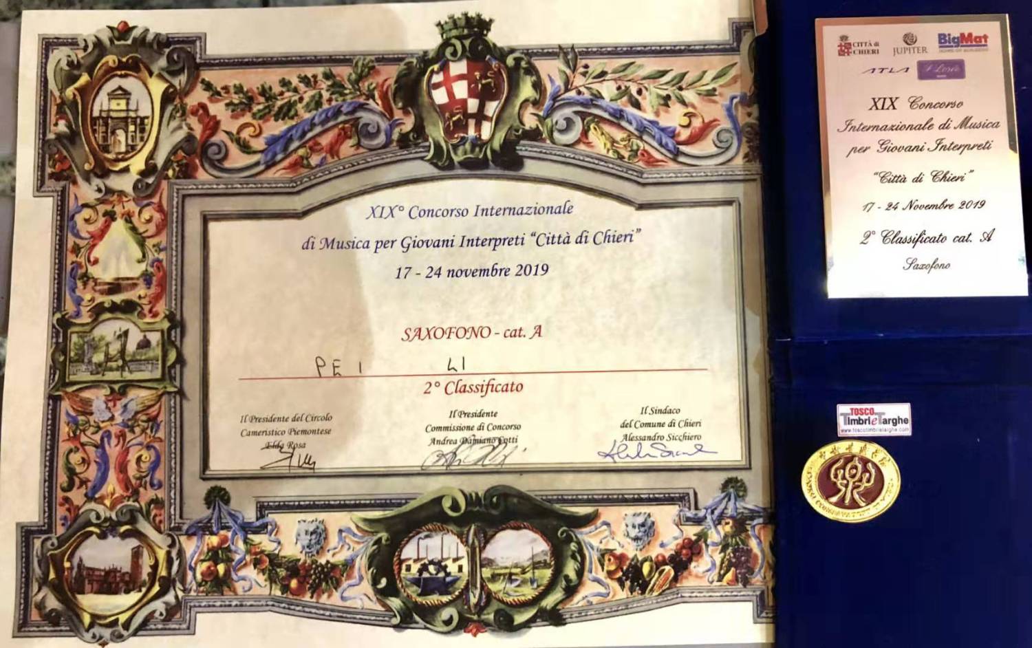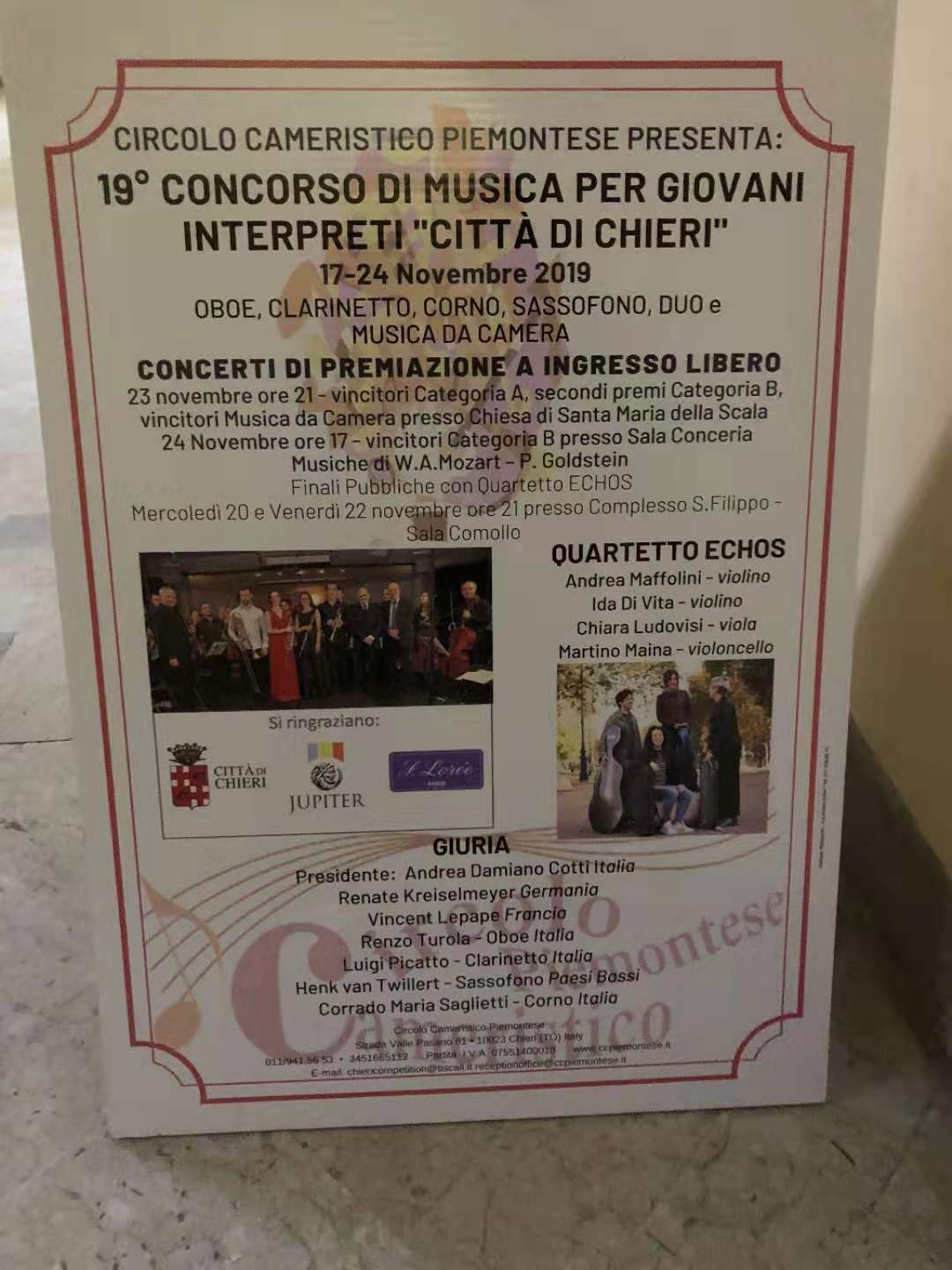 第19届意大利基耶里国际音乐比赛由Circolo cameristico piemontese和意大利都灵基耶里市政府组织举办,以支持和鼓励年轻人才。评审委员会由Andrea Damiano Cotti(意大利)、Renate Kreiselmeyer(德国)、Vincent Lepape(法国)、Renzo Turola(意大利)、Luigi Picatto(意大利)、Henk van Twillert(荷兰)、Corrado Maria Saglietti(意大利)共七位国际知名评委组成。