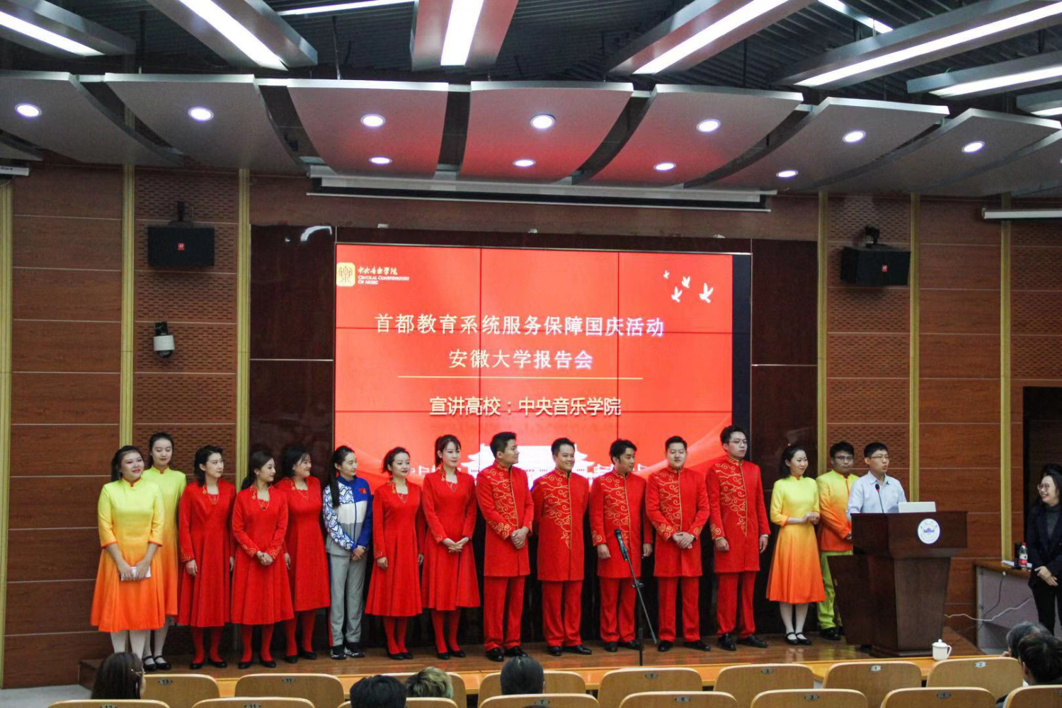 宣讲会反响热烈,在场师生纷纷表示要不忘初心、牢记使命,努力勤奋学习,以中国当代大学生的责任和担当服务社会,报效祖国。服务保障国庆活动的珍贵经历与记忆,将会镌刻在央音人的心中,这是央音人与祖国的故事、是央音人的爱国热情、是央音人的家国情怀,央音人将把祖国70周年庆祝活动中形成的宝贵精神财富转化为不懈奋斗的持续动力,为繁荣祖国文艺发展贡献力量!