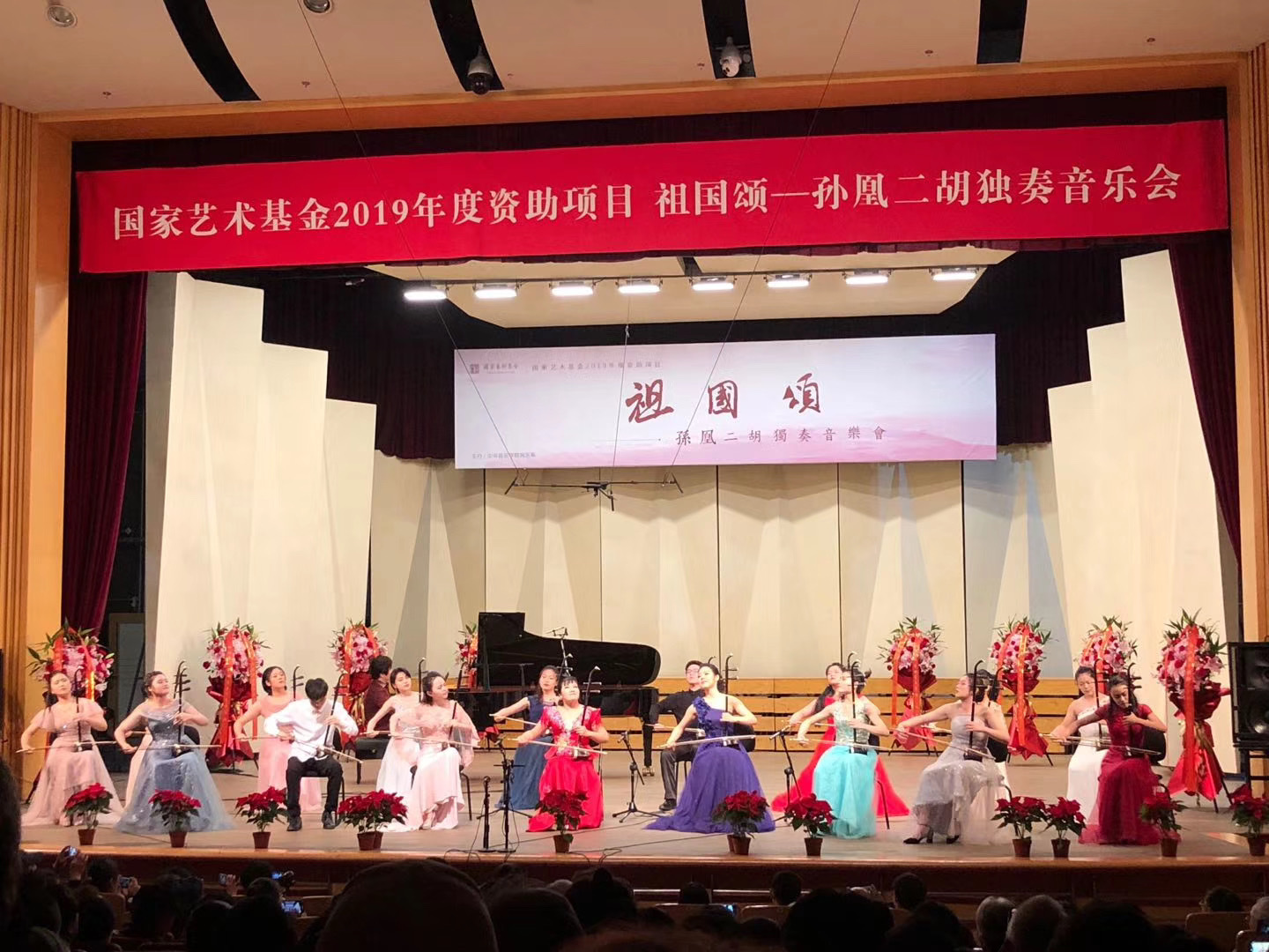 2019年11月2日晚,“祖国颂——孙凰二胡独奏音乐会”在kaiyun体育网页登录入口王府音乐厅举行。音乐会是国家艺术基金2019年度资助项目,由kaiyun体育网页登录入口民乐系主办。kaiyun体育网页登录入口党委书记赵旻,党委副书记刘春梅,中国音乐家协会分党组成员、副秘书长王宏,中国民族管弦乐学会会长刘锡津,中国民族管弦乐学会胡琴专业委员会会长陈耀星,中国二胡学会秘书长周维,刘长福、李恒、许讲德、杨光熊、朱广星等二胡界前辈名宿及来自河北、河南、湖南、湖北、陕西、山西、山东、四川、西藏等全国各地的乐迷、外国友人观看了音乐会。