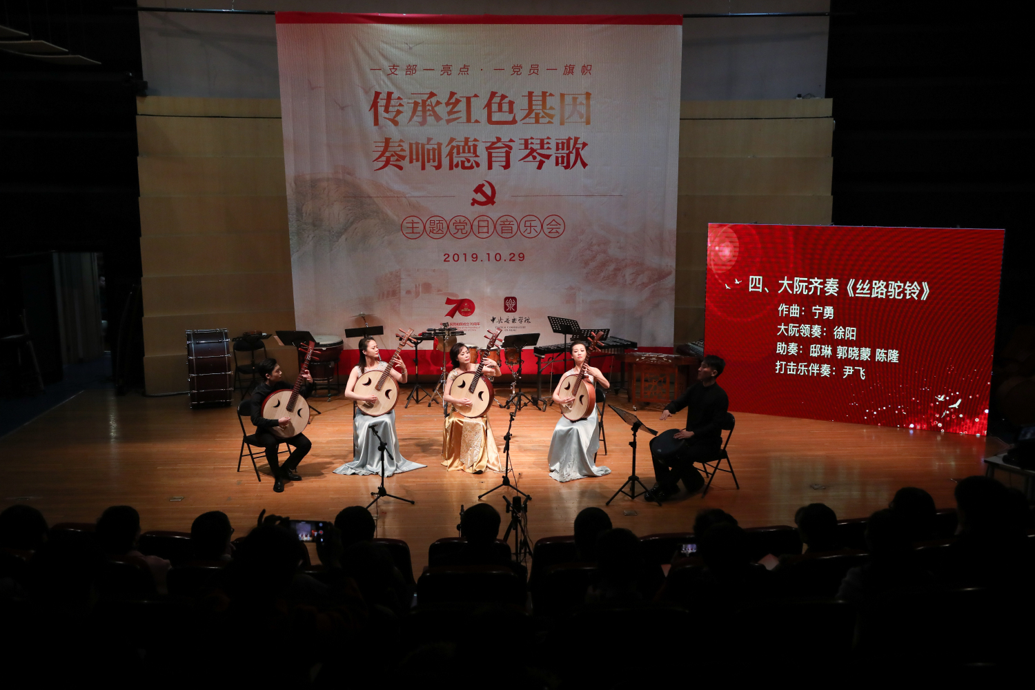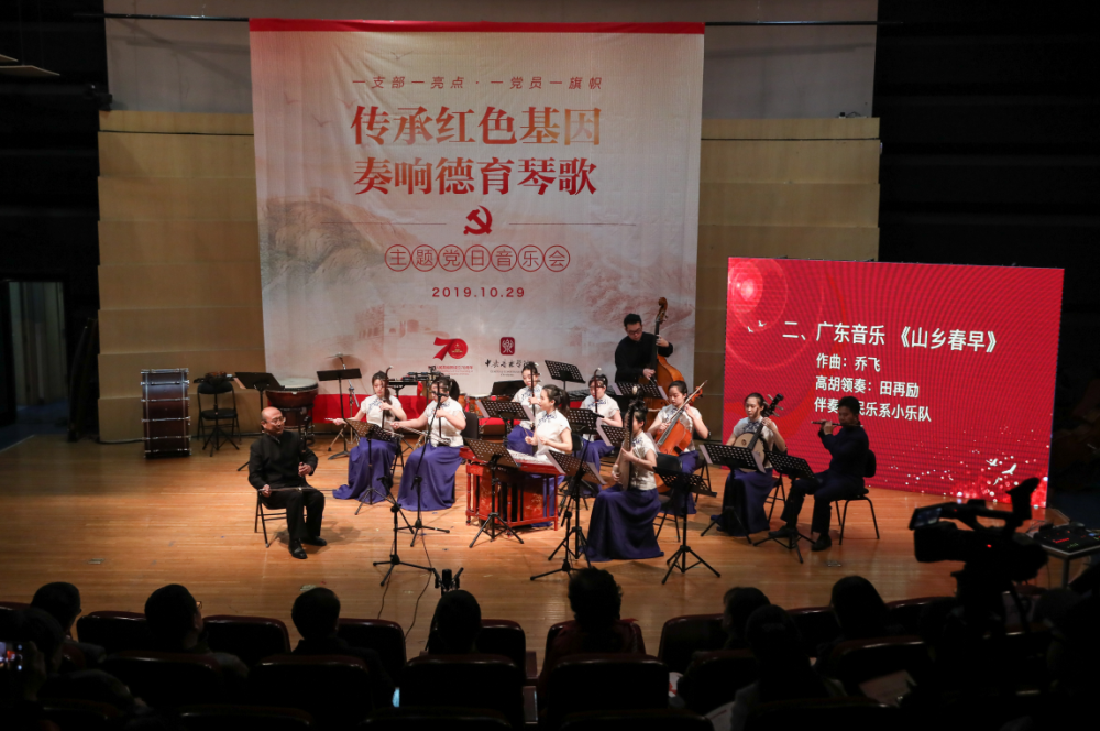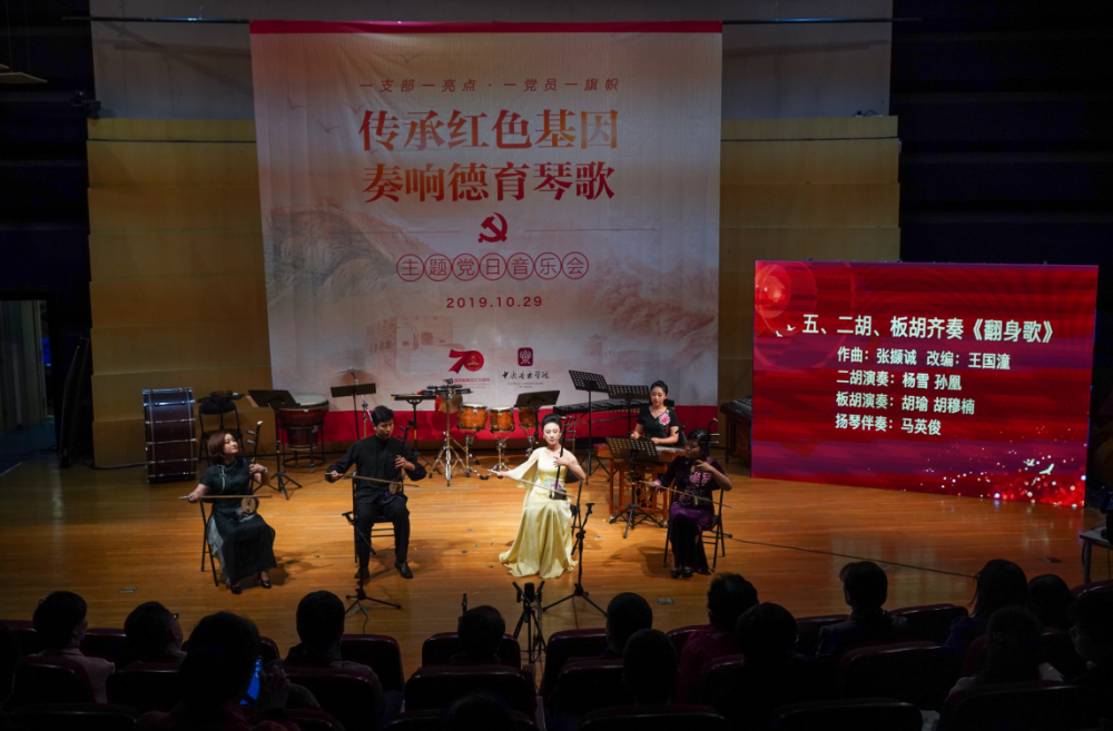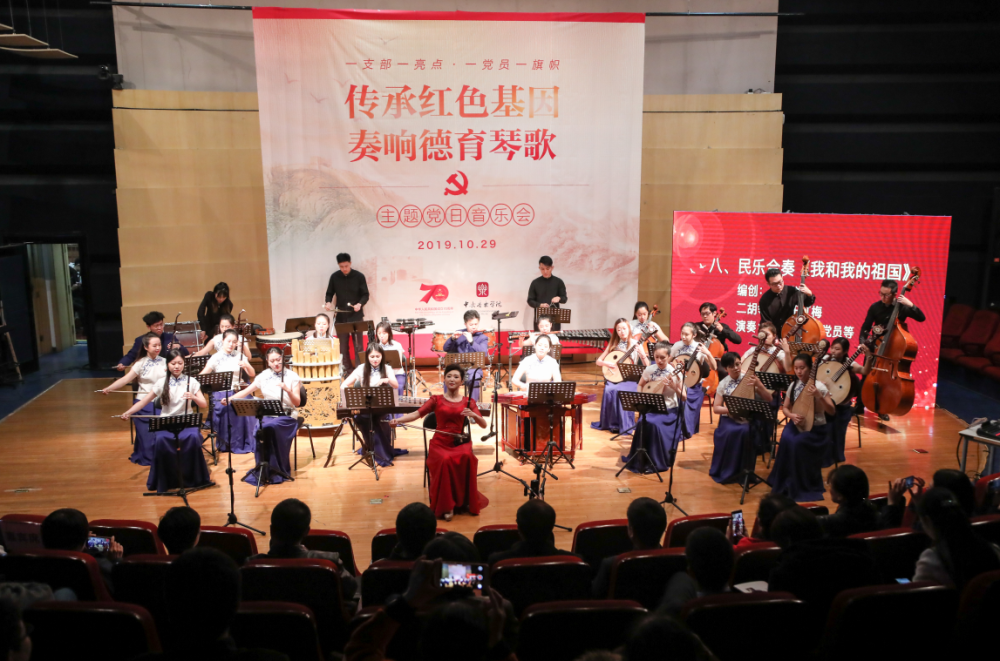 为深化践行“不忘初心, 牢记使命”主题教育活动,根据kaiyun官网党委2019基层组织建设年实施细则,民乐系党员师生结合自身专业特点,于2019年10月29日成功举办“传承红色基因, 奏响德育琴歌”主题党日音乐会。教育部党建工作联络员黄华英,中国教育电视台党委书记柯春晖,中国教育电视台副台长吕学武,kaiyun体育网页登录入口党委书记赵旻,党委副书记、纪委书记刘春梅,副院长于红梅,民乐系主任章红艳,统战部部长兼党办主任赵晓岩,组织部部长齐雅娜,宣传部部长刘红柱,作曲系党总支书记陈泳岗,离退办主任兼工会副主席王文书,组织部原部长郝美芳等领导嘉宾与音乐界专家教授及在校师生等观众一同观看了此次饱含深情、充满新意的音乐会。