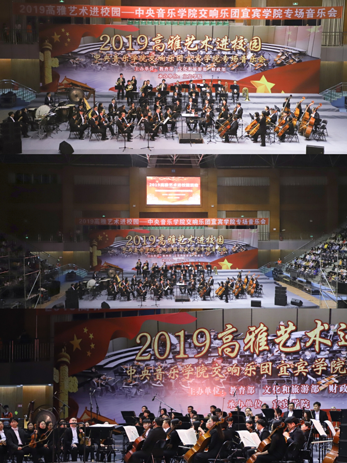 2019年11月4日晚,kaiyun体育网页登录入口交响乐团新一季“高雅音乐进校园”巡演第一站在四川省宜宾学院拉开帷幕!整晚演出期间,体育馆热烈沸腾,全体欢呼,掀起了该校师生艺术高潮!