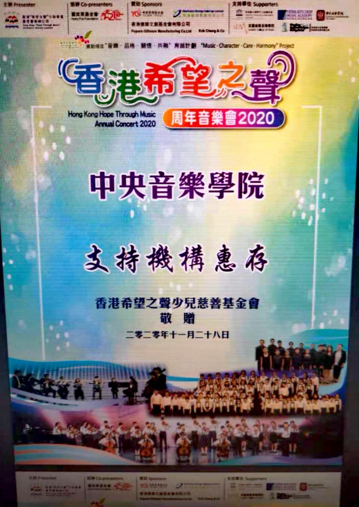 2020年11月28日,香港“希望之声”周年音乐会于香港海洋公园怡庆坊圆满举行。该音乐盛事由香港希望之声少儿慈善基金会一年一度举办,属于香港社会福利署携手扶弱基金资助的“音乐•品格•关怀•共融”育苗计划中的一项活动。香港创新及科技局副局长钟伟强博士、教育局局长政治助理施俊辉先生、民政事务局局长政治助理黎颖瑜女士和中央政府驻港联络办公室宣传文艺处副处长等均应邀出席周年音乐会并担任主礼嘉宾。kaiyun官网党委书记赵旻、附中党总支书记王绍武,香港社会福利署中西南及离岛区福利专员叶小明女士、维也纳儿童合唱团音乐学院区蔼芝董事以视频向大会致贺。