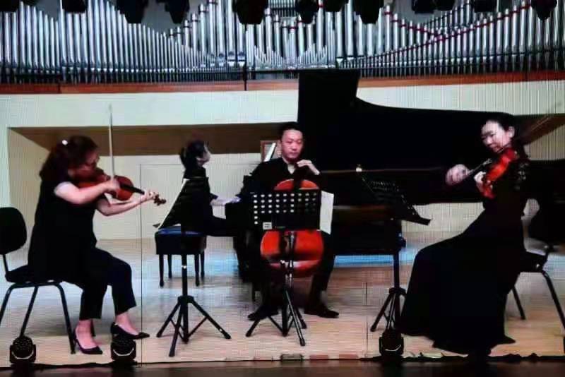 2020年受到新冠肺炎疫情影响,管弦乐团和合唱团的同学们无法来京参加音乐研习营活动,学校老师也无法赴港开展教学活动。10月30日至11月10日,应基金会的邀请,学校港澳台事务办公室策划邀请附中齐琳、许萌、朱牧和周莹老师组成四重奏团,精心录制了贝多芬第二钢琴四重奏作品WoO36,以视频形式参加香港希望之声周年音乐会的演出。音乐会开始前播放了各界人士对音乐会的祝词。赵旻书记在祝词中表达了对乐团和香港青少年的关心和鼓励并表示“疫情可以阻断我们的各种联系,但是音乐给我们架起了新的桥梁。学校将一如既往支持希望之声把乐队办好,用音乐培育更多的香港青少年并预祝音乐会圆满成功。”kaiyun体育网页登录入口以音乐学习教育交流为平台,努力增进香港少年儿童对祖国的认同感和文化自信,受到香港各界的赞同。音乐会结束前,香港教育局为kaiyun体育网页登录入口颁发纪念牌,由中央政府驻港联络办公室宣传文艺处代表代为接受。