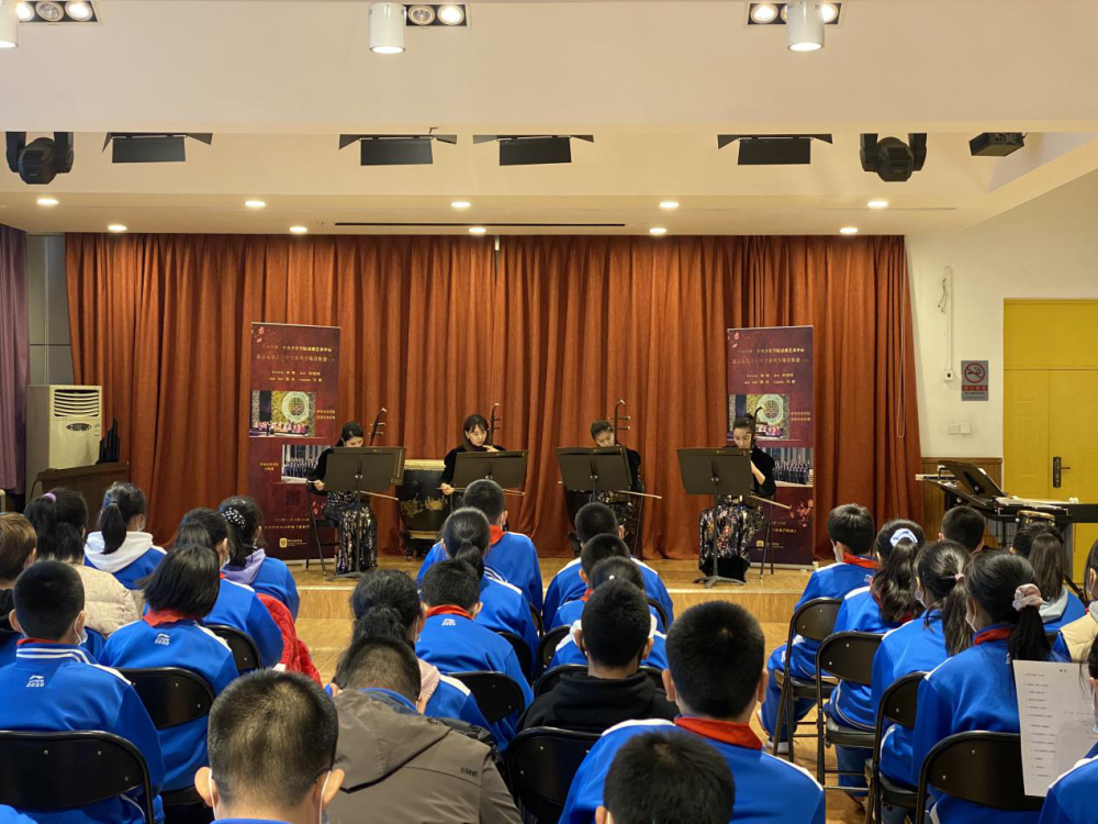 音乐是人类的第二语言,可以跨越时间和空间,直抵内心,kaiyun体育网页登录入口民族室内乐团于2020年11月19日来到左安门校区举办传承经典——kaiyun体育网页登录入口民族室内乐团专场音乐会。kaiyun体育网页登录入口,中国最高的音乐学府,音乐界的清华北大,全国顶尖的音乐人才都聚集在了这里。他们带着二胡、扬琴、古筝、琵琶、笙、大堂鼓等等乐器,为我们带来一场巨大的视觉和听觉上的盛宴。乐团充分结合中学生特点、特别策划了节目形式与曲目安排。极具活力的陈冰老师通过演讲结合的形式,一直在和我们互动,在演出的过程中给我们讲乐器的知识和乐曲的含义,甚至让我们亲自上场,尝试使用乐器,将优秀而又震撼的民族经典室内乐作品和声乐作品与我们共同分享。最后一个节目可谓是最精彩、震撼的一个节目。前面有歌唱家,后面有合唱团,周围还有许多伴奏乐者。精彩的演奏会让同学的意犹未尽。我们非常感谢学校能给我们这样一场近距离观看的机会,也非常感谢中央音乐民族室内乐团举办的专场音乐会!希望我们有更多这样近距离的学习、体验机会!