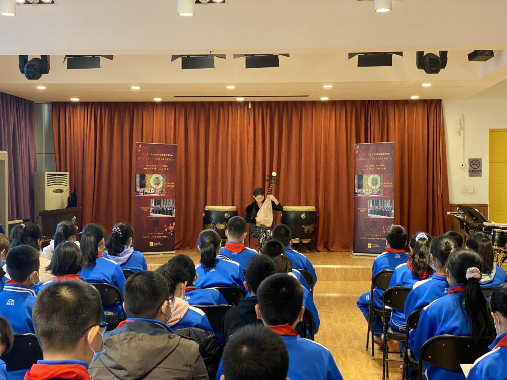 同学们在乐团成员的指导下,尝试演奏民族乐器。台上尝试、台下聆听,做好笔记、写下感悟,现场学习气氛浓厚。
