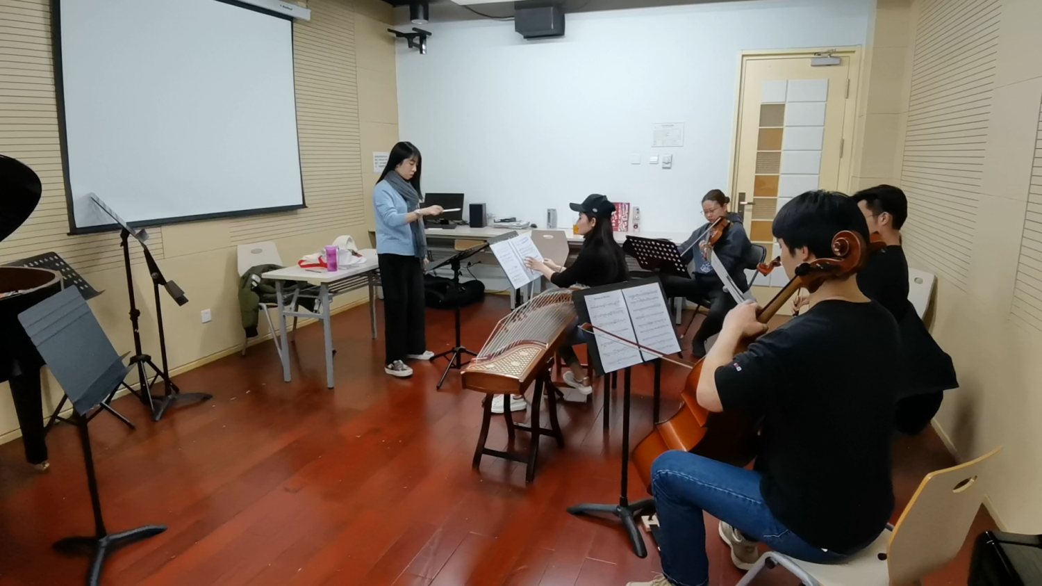 ‘Harmony in Diversity’在排练,曲作者亲自指挥。