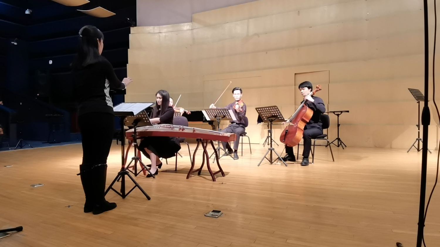 演出来到中场,一首中西合璧的《Harmony in Diversity》(作曲:梁钧惠),让在场观众眼前一亮。‘Harmony in Diversity’译为“和而不同”。此曲在编制上引入了我国传统弹拨乐器古筝,而风格则借鉴日本民歌都节调式。全曲动静相宜,和睦相处,却非随便附和;相互结合,却非融为一体。正如曲作者本人的阐释——“各美其美,美人之美,美美与共,和而不同。”