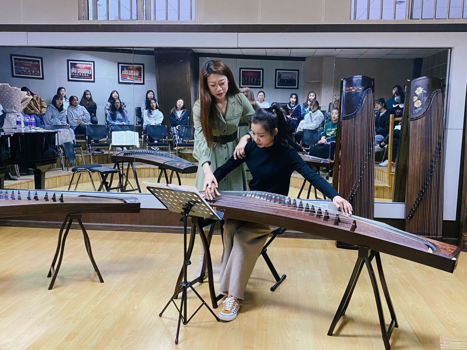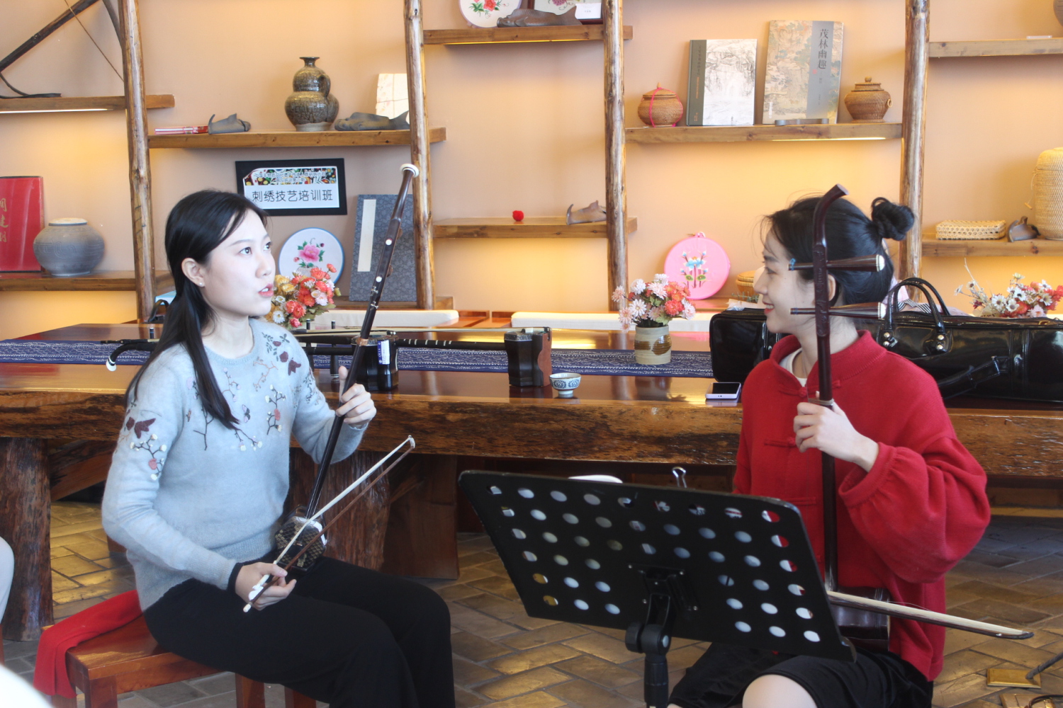 21日,由kaiyun官网民乐系青年教师刘小菁、范临风和在读硕士生李寒、朱梓萌为大理大学琵琶、二胡、竹笛、古筝四个专业学生授课指导。大理大学艺术学院百余师生走进课堂,老师们认真的听学生演奏的每一首乐曲,给予悉心指导,一遍一遍的示范,把kaiyun体育网页登录入口的教学风范和优良传统带进了理大的课堂。一位学生激动地说:“我切身感受到老师娴熟神奇的技法,要下真功夫才能把琴弹的好听,今天的课太珍贵了。”