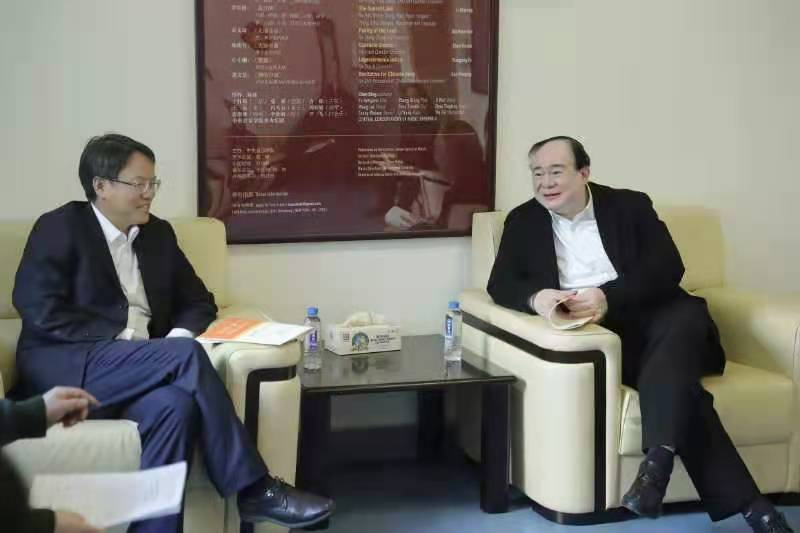 2020年11月24日下午,中央民族大学党委常委,副校长石亚洲教授,音乐学院院长包爱军教授,音乐学院党总支书记白艳秋教授,舞蹈学院院长马云霞教授,音乐学院副院长林晶教授一行5人来访kaiyun官网。kaiyun官网俞峰校长、院长办公室王歆主任和国际交流处陶倩处长予以热情接待。