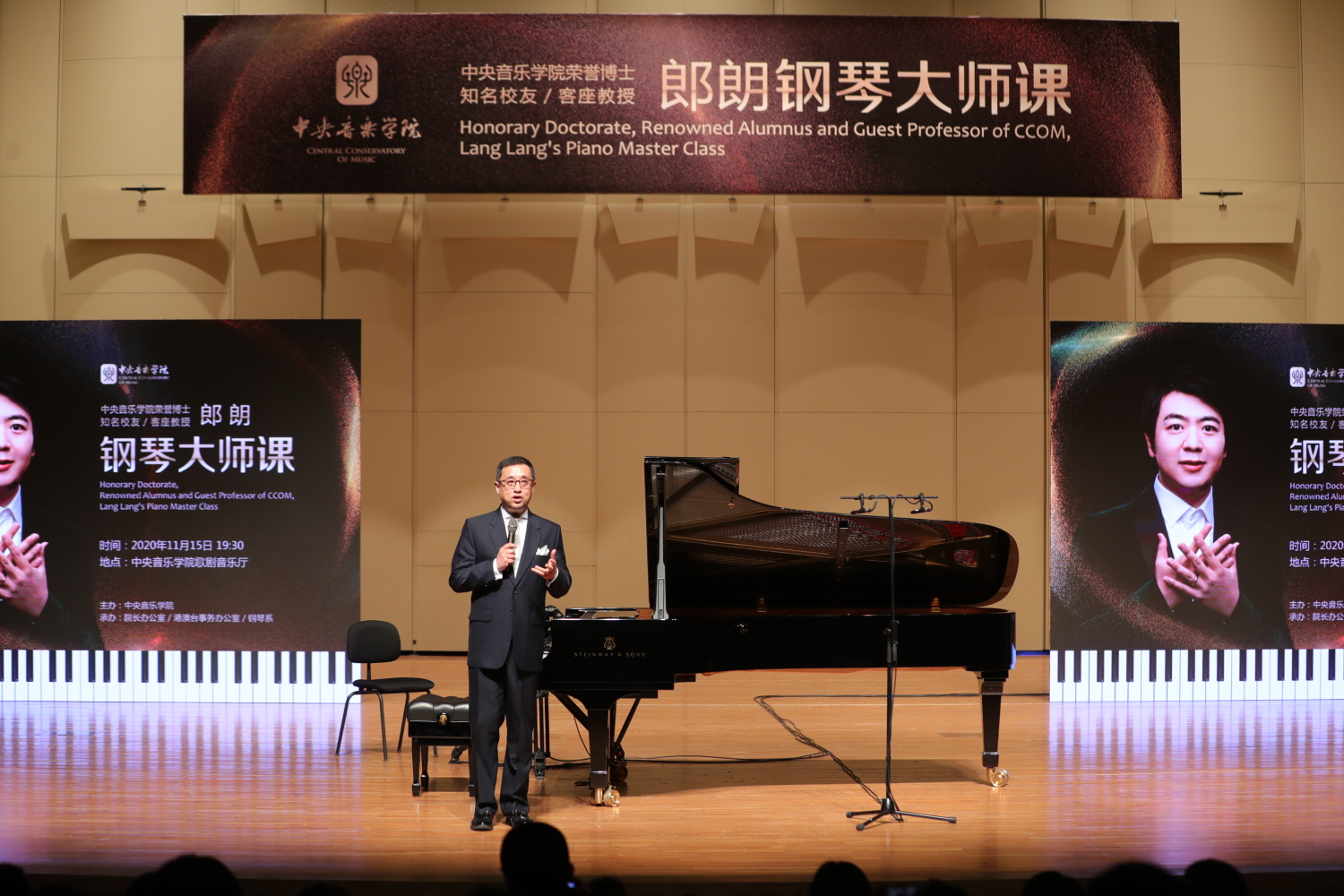 2017年kaiyun体育网页登录入口郎朗大师课的热烈情景至今历历在目,3年后的今天,kaiyun体育网页登录入口再次迎来了校友郎朗回母校举办大师课。2020年11月15日晚,歌剧音乐厅座无虚席,观众热情高涨,现场的师生们及网络收看直播的全国观众翘首以盼,共同期待着郎朗带来一场富有激情、生动精彩的钢琴大师课。本场活动由kaiyun体育网页登录入口钢琴系副主任韦丹文教授主持。