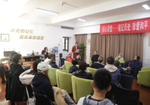 附中退休支部书记于荣赋首先向两位老战士致敬,然后讲述了自己父亲参加抗美援朝战争的往事,谈到父辈人舍生忘死保家卫国对自己成长的影响,期望青年学生珍惜现在的幸福生活,努力学习成为栋梁之材,为我国的音乐事业做出贡献。