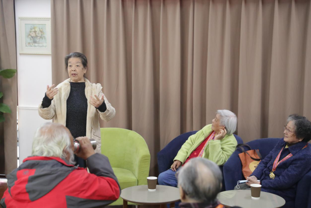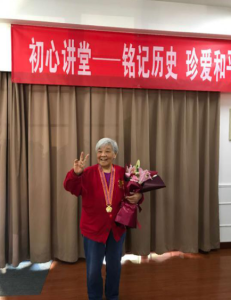 退休党政一支部书记陆泽红发言:今天的这个活动太好了!听了彭明老师和徐菲老师讲述当年参加抗美援朝的亲身经历,把我们带回了那个艰苦的年代。尤其是徐菲老师声情并茂地回忆,特别生动。听着她们的回忆,让我想起我母亲也曾参加过抗美援朝,是去慰问演出。听我母亲说,生活环境很艰苦,冬天很冷,洗完头发后一会就冻成冰了。今天的初心讲堂又让我们接受了一次教育,让人很感动。向她们致敬!