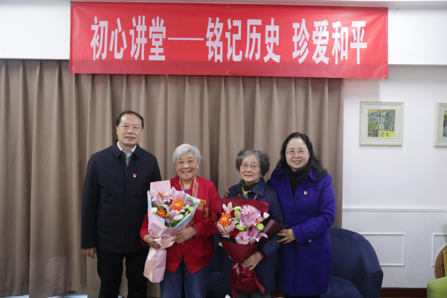 离退休铁运党支部刘长山支委发言:今天在初心讲堂受到了一次深刻的革命传统和爱国主义教育,两位大姐的亲身经历,将我们带到了战火连天的抗美援朝战场,她们是巾帼英雄、当代花木兰。志愿军战士是最可爱的人,我们共同回忆深刻缅怀。新中国在党中央的英明领导下跨入了新时代,我们感到十分幸福,必须生在福中要知福,更应当在新的时代里“不忘初心,牢记使命”!年轻一代没经历过战争,通过老一辈的讲述,要铭记历史珍惜和平,青年学生要有更好地担当,把我们的国家建设得更强大,更加繁荣富强!