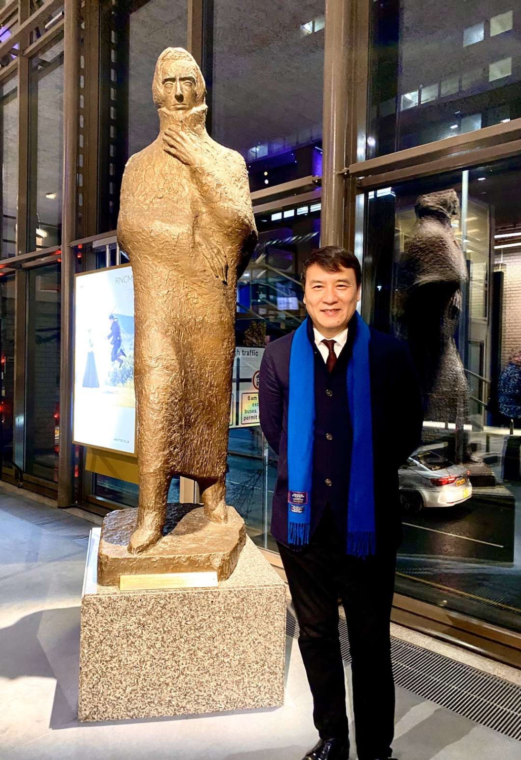 叶小纲教授在北方皇家音乐学院肖邦塑像前