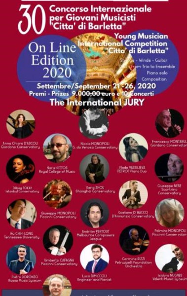 巴列塔国际音乐比赛由意大利朱塞佩·库尔奇文化与音乐基金会主办,得到巴列塔市政厅、普利亚大区和文化遗产部音乐局的赞助和支持,比赛项目包括钢琴、弦乐、管乐、作曲、吉他、室内乐,每年一届,在意大利东南部海滨小城巴列塔举行。2020年第30届比赛由于全球疫情蔓延,改为网络比赛,收到了全世界40多个国家的320多份申请。比赛总奖金9000多欧元,并计划为获奖者提供总计10场音乐会演出的机会。评委来自意大利乔尔达诺音乐学院、杰索尔多·达·韦诺萨音乐学院、巴里音乐学院、丹嫩齐奥音乐学院、斯康特里诺音乐学院、伊斯坦布尔音乐学院、英国皇家音乐学院、上海音乐学院、田纳西大学、墨尔本作曲家联盟、以及各重奏和管弦乐团成员。