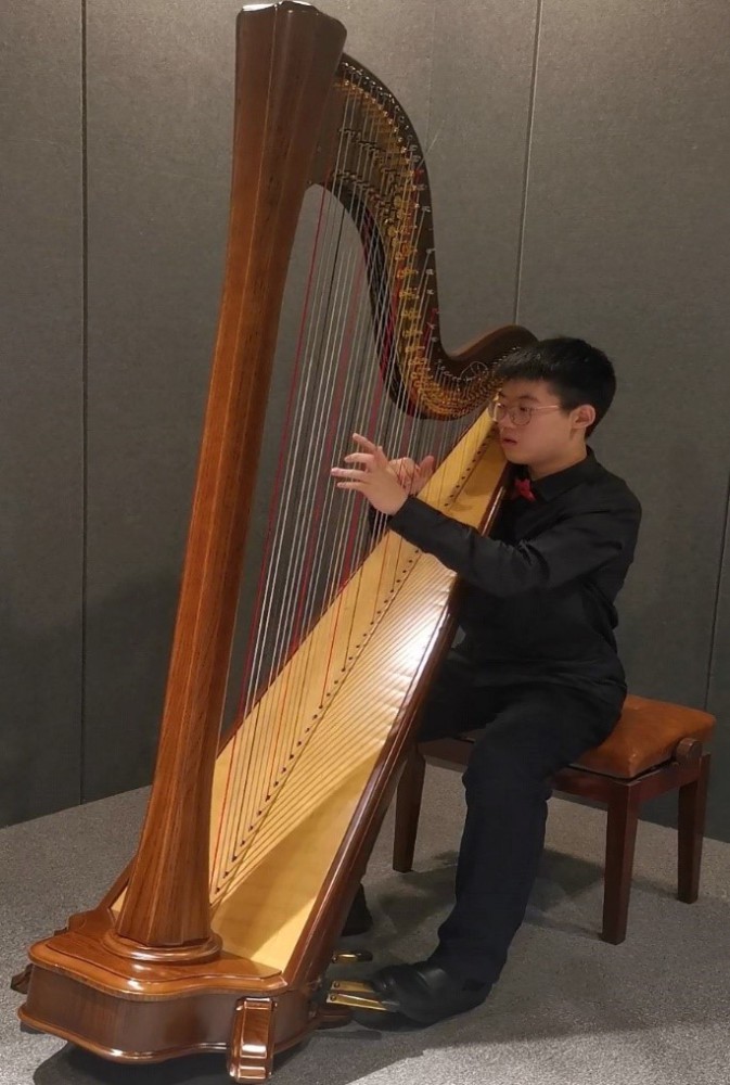 李佳阳,11岁,于2019年考入kaiyun体育网页登录入口附小,师从kaiyun体育网页登录入口王冠副教授。曾于2018年获得第四届香港国际竖琴比赛优秀奖、2020年获得塞尔维亚国际音乐比赛竖琴II组一等奖。曾在北京中山音乐堂、广东演艺中心大剧院表演竖琴独奏。