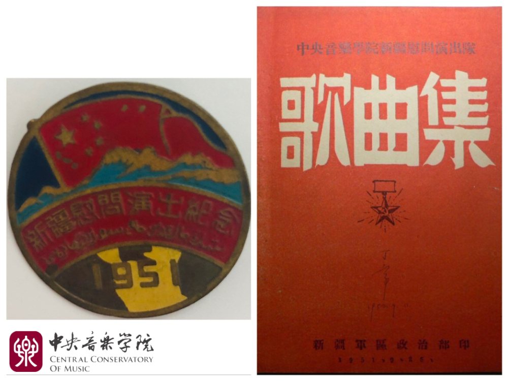 新疆慰问演出队纪念章和出版的《歌曲集》