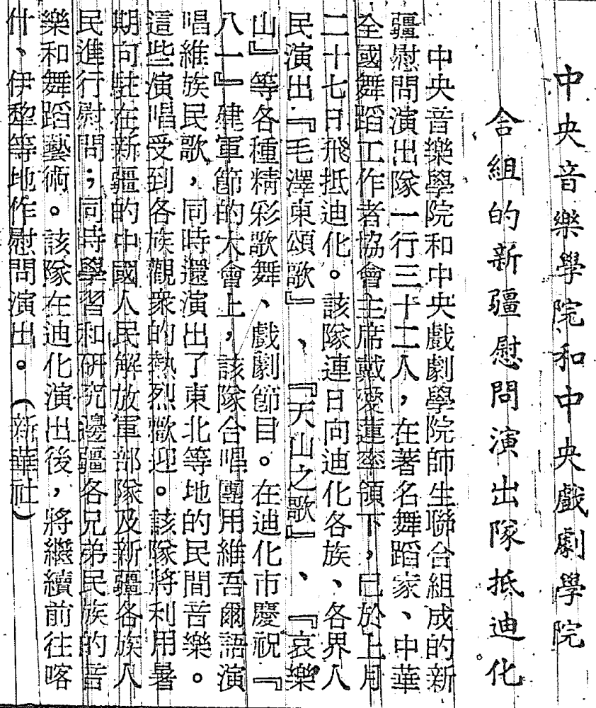 《新疆日报》对慰问演出团在疆行程进行了连续、多篇幅的报道(包括全体成员名单)。