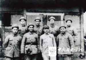 下图为管弦系团支部欢送胡长征(中间围巾在胸前者)同学加入军事干部学校