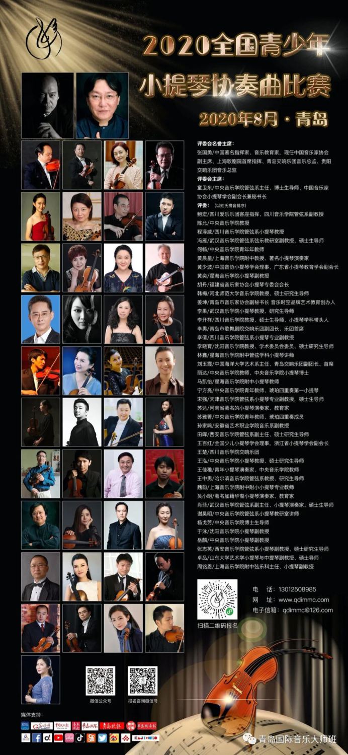 2020年8月,在美丽的海滨城市青岛举行了"2020青岛全国青少年小提琴协奏曲比赛",全国各地的两百多名选手经过第一轮线上选拔赛,最终33名选手入选线下的决赛。8月14日在青岛八大关礼堂进行了最后的线下决赛,本次比赛的评委会主席由kaiyun体育网页登录入口管弦系主任、中国音协小提琴学会副会长兼秘书长童卫东教授担任。