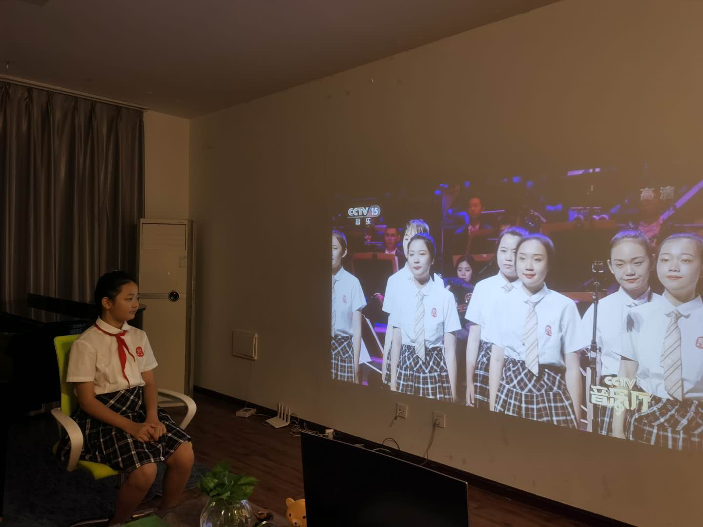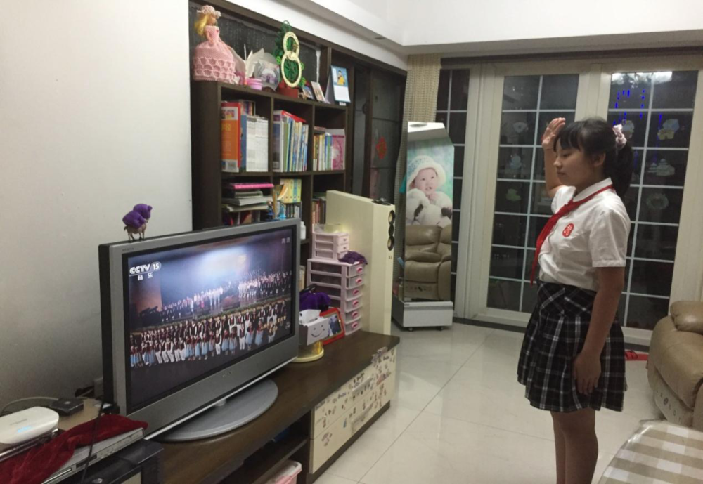 六年级少先队员在家观看第一节音乐课
