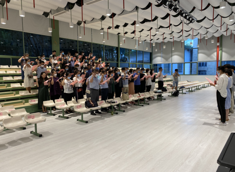最后,钢琴学校举行教师节宣誓活动。全体教师高举右手庄严宣誓,立志:育人为本,敬业爱生,做有理想信念、有道德情操、有扎实学识、有仁爱之心的四有好老师。