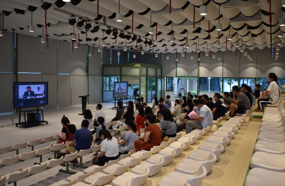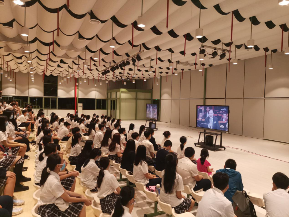 全体教职工于学校综合馆集中观看会议直播