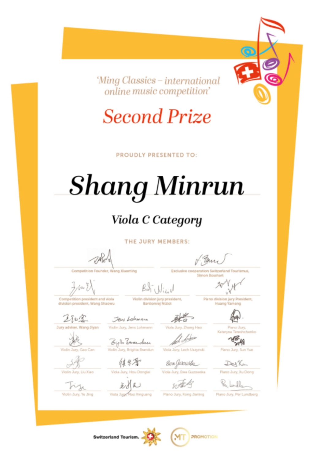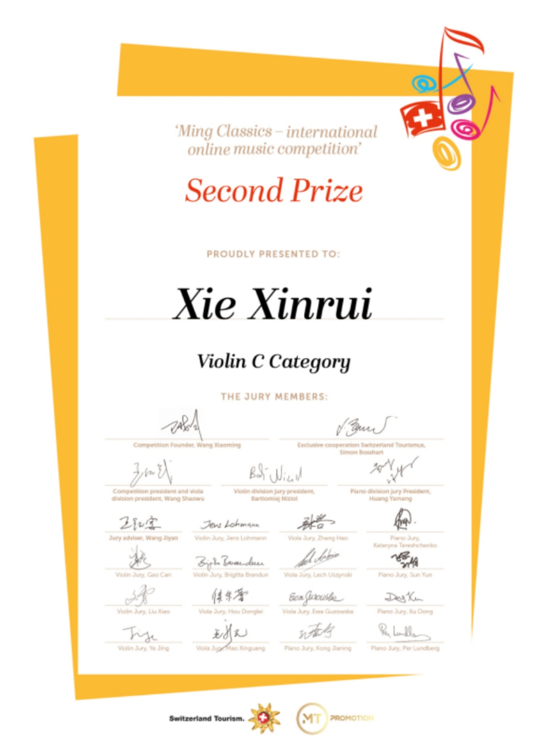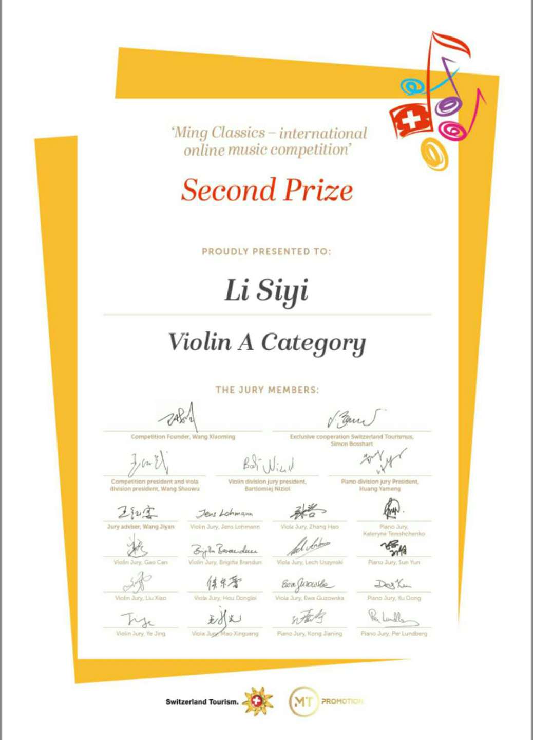近日,瑞士明日古典国际音乐大赛落下帷幕,kaiyun官网多名学生荣获该比赛佳绩!