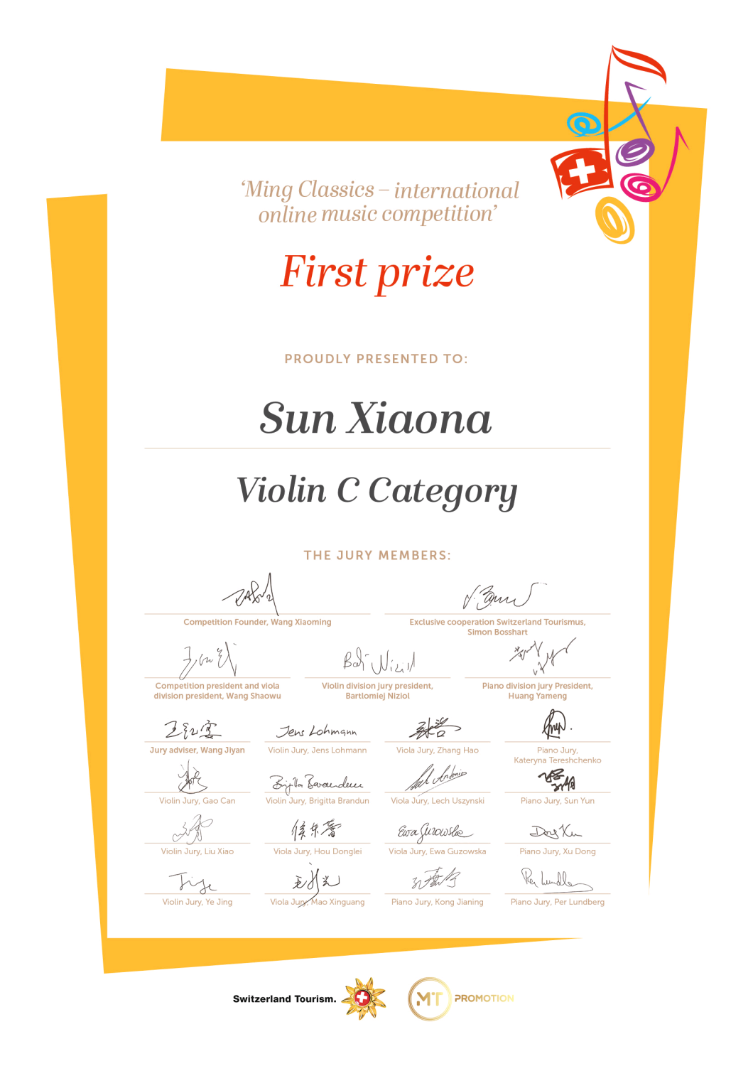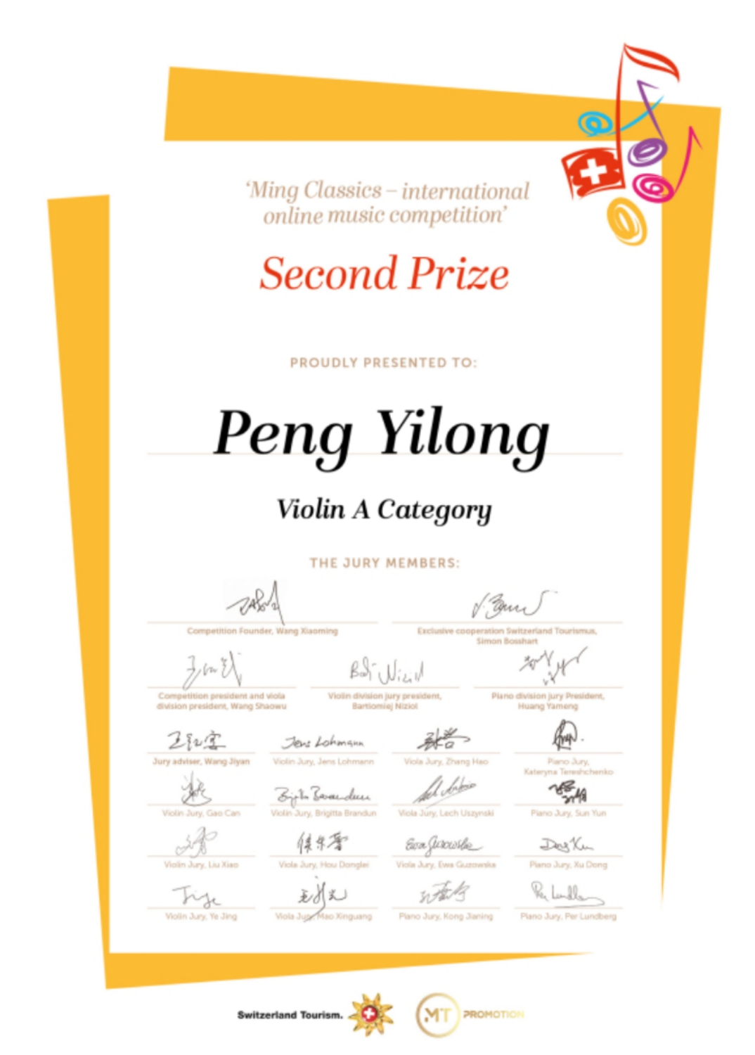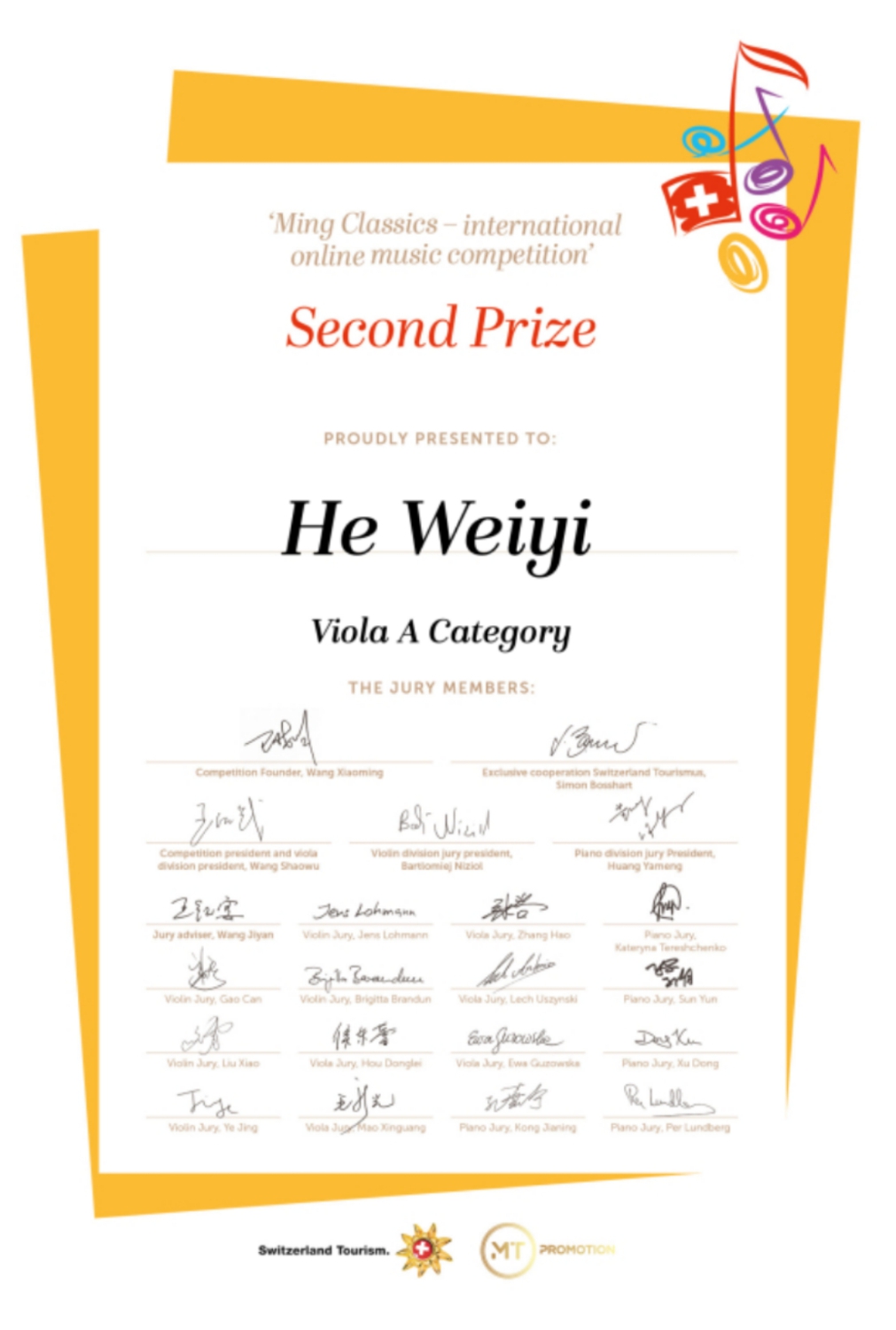 近日,瑞士明日古典国际音乐大赛落下帷幕,kaiyun官网多名学生荣获该比赛佳绩!
