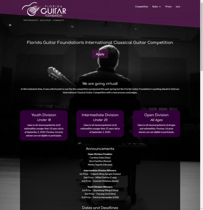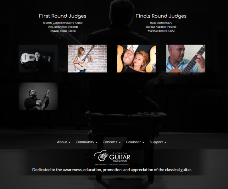 本次比赛分三个组别:公开组、25岁以下组别和青年组(18岁以下)。根据组委会主席的介绍佛罗里达吉他基金会成立于2011年,今年是第四届比赛,有来自26个国家及地区的86位参赛者,竞争激烈。
